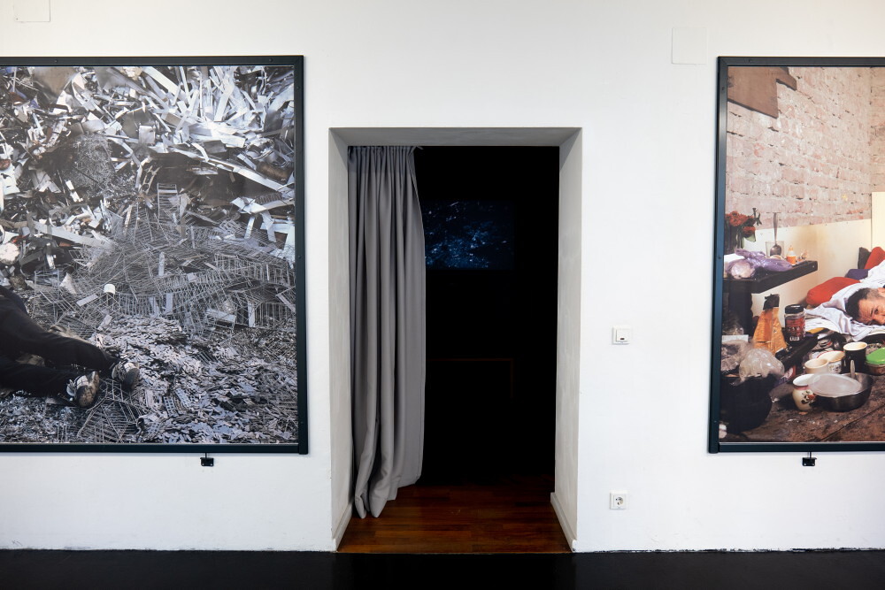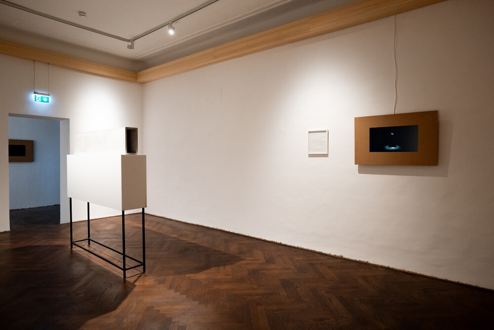 Im letzten (oder, von der Hautstiege aus im ersten) Raum des neu gestalteten Südflügels im 2. Stock ist die letzte und die erste „Konstruktion“ von Zlatko Kopljar versammelt: In einer Zeitspanne von mehr als 20 Jahren hatte der Künstler akribisch seine einzelnen Performances und Filme konzipiert. Als drittes Werk (K6) ist die persönlichste eingespannt: Ein schlichtes Foto dokumentiert eine Markierungs-Performance an jener Stelle, als sein Vater im Krieg durch eine Bombe – wie viele andere in jener Stadt – getötet wurde: 23091992. Zwei Wochen später war die Markierung durch darüberfahrende Autos ausgelöscht.