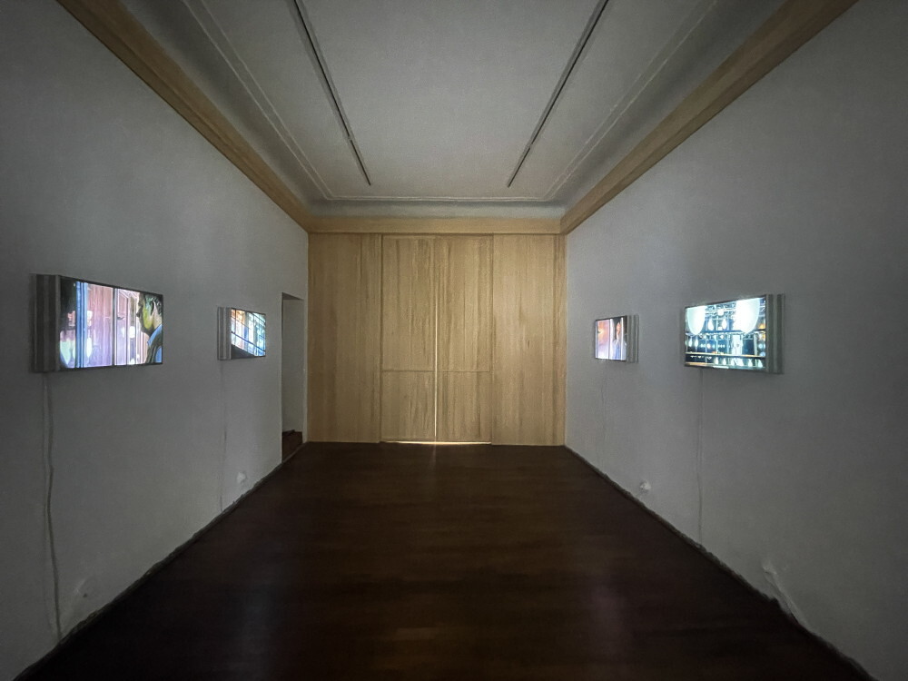 Zlatko Koplljar: Disturbances, 2021–24, 10 tlg., Öl auf Leinwand, Ausstellungsansicht: Zlatko Kopljar: AUSLÖSCHUNG | ERASION. KULTUMUSEUM Graz