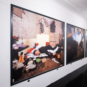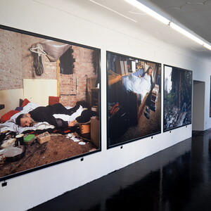 Auf dem Weg zur Leere, zur Auslöschung, hält Zlatko Kopljar in seinem „K“-Projekt an zahlreichen Stationen inne. Im Gang des Westflügels sind mit K11großformatige Fotoabzüge zu sehen, auf denen der Künstler Künstlerkollegen fotografisch porträtiert und inszeniert, die sich nie in den Mainstream einfügen wollten. Die meisten von ihnen sind schon tot. Sie blieben sich selbst immer treu, blieben damit aber auch am Rande der Gesellschaft, vernachlässigt und schließlich vergessen. Auch sie wollten die Welt verändern, doch die Welt hat sie nicht beachtet und gesehen. Kopljars Bildsprache ist radikal: Er stellt sie, die im Grunde Ähnliches wollten wie er, als gesellschaftlichen Abfall dar, als unerwünschte Menschen. Die Serie ist eine Radikalanklage gegen Tendenzen in einer kapitalistischen Kultur, die Umstände schafft, dass bestimmte Menschen an den Rand verbannt oder sogar ganz ausgeschlossen werden.