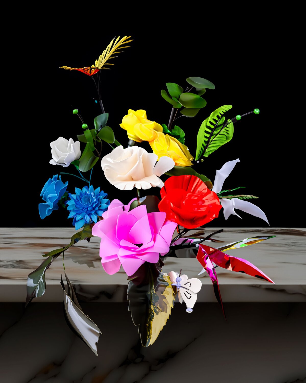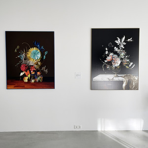 In der Serie "Stillleben 3000" tritt Claudia Larcher in einen zeitgenössischen Dialog mit der Tradition des klassischen Stilllebens. Die digital und mithilfe von KI erzeugten Werke sind inspiriert von Rachel Ruysch, einer wegweisenden niederländischen Künstlerin des 17. Jahrhunderts.