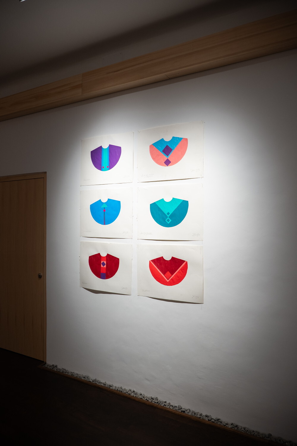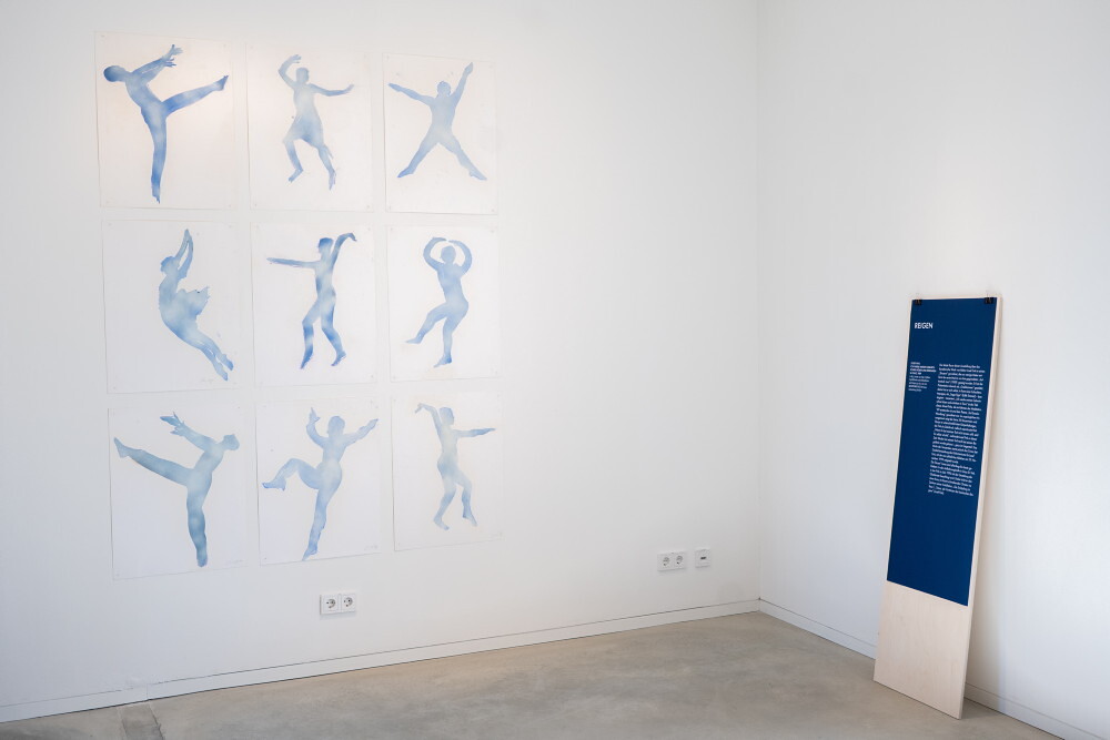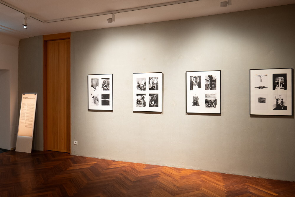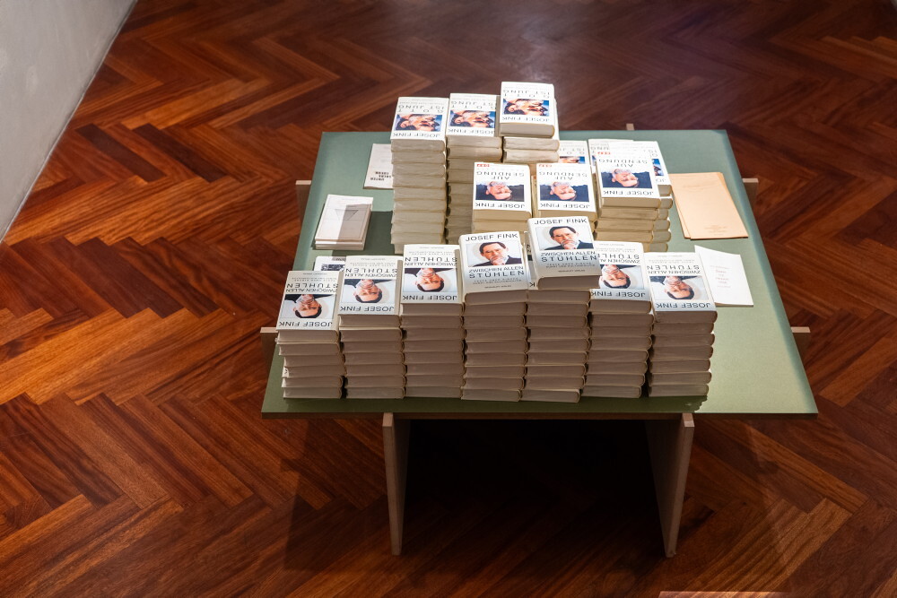 Der letzte Raum dieser Ausstellung über das künstlerische Werk von Rektor Josef Fink ist seinen „Tänzern“ gewidmet, die nur wenige Meter entfernt das erste Mal im von ihm gegründeten „Kulturstock zwo“ (1989) gezeigt wurden. Er hat die Präsentation damals als „Grabkammer“ gestaltet; dabei hat er sich selbst, in Form einer Schaufensterpuppe, als „Sepp-Figur“ (Edith Temmel) – bandagiert – inszeniert. „Ich werde meinen Geburtsschrei hören und ertrinken in Tanz“ ist der Titel dieser Arbeit Finks, die im Rahmen der Meditation `89 entstanden ist und dem Thema „Tod Exodus Wandlung“ gewidmet war. Im ursprünglichen Arrangement zeigt die Serie 30 Tänzerinnen und Tänzer in unterschiedlichsten Körperhaltungen, die Fink als Siebdruck vielfach reproduziert hat.