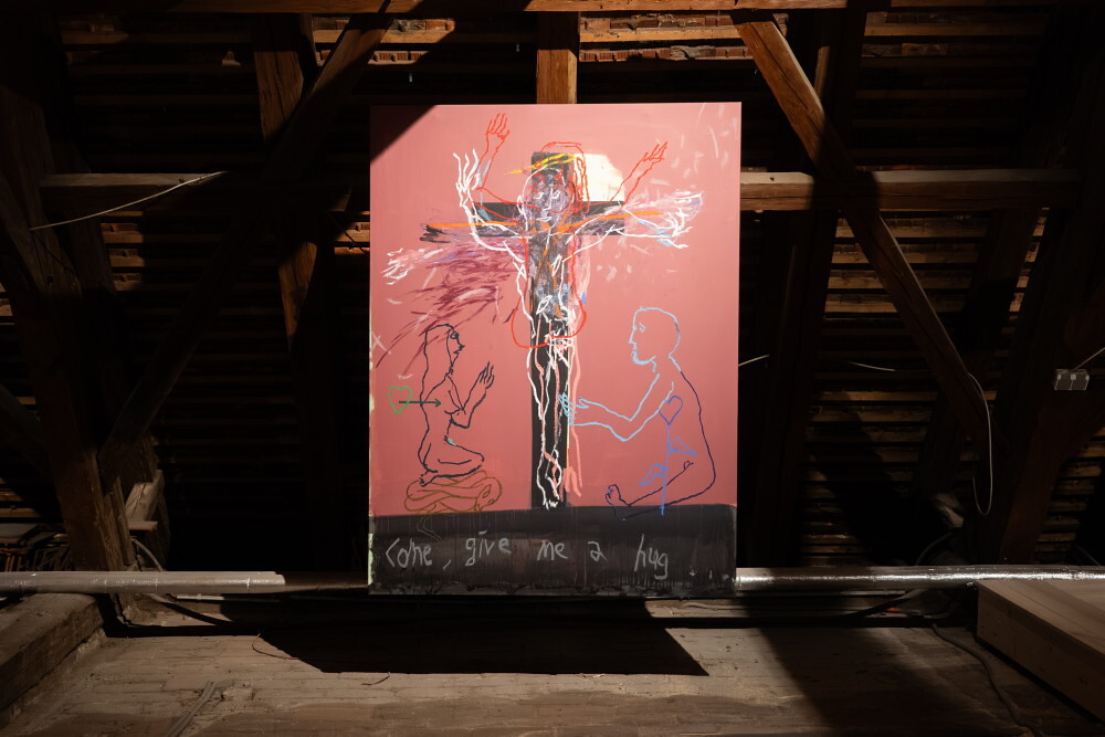 Guillaume Bruère* 1976 in Châtellerault (FR), lebt in Berlin (DE), 04.04.2017, Acryl, Ölkreide auf Leinen, 200 x 150 cm, KULTUMUSEUM Graz, aus: Guillaume Bruère: DEAD&ALIVE. Alte Meister (2021)