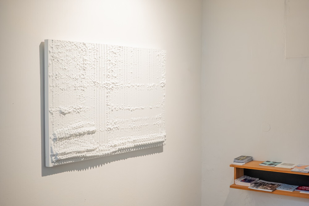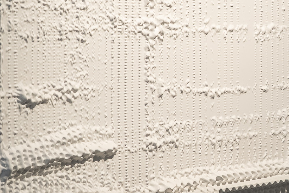 0512, Martin Mathy * 1976 , Steffen Strassnig *1969, leben und arbeiten in Graz (AT), Sonagramm des Wortes „Allah“, 2008 – 2010, Kunststoff, CNC-gefräst, 87 x 140 x 8 cm, 1/ 3, DVD, In Kooperation mit Islamforscher Ibric Almir / Islamische, Religio