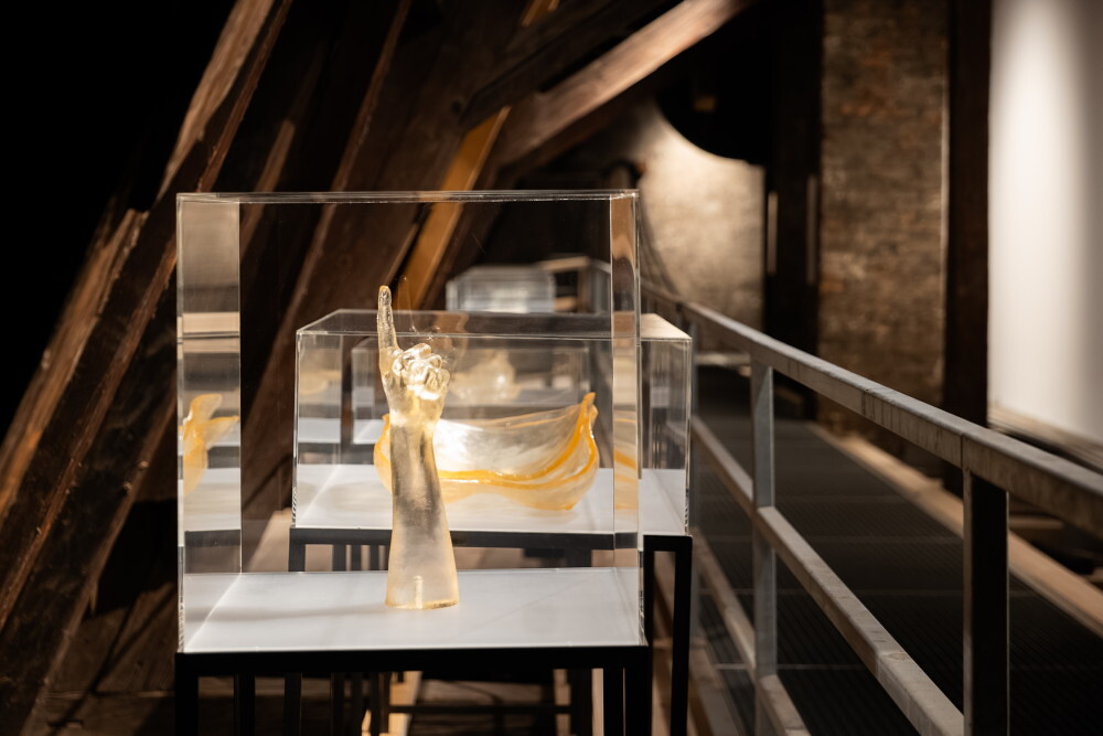Körperabgüsse der Künstlerin, farbloses Gießharz, Höhe 40 cm
