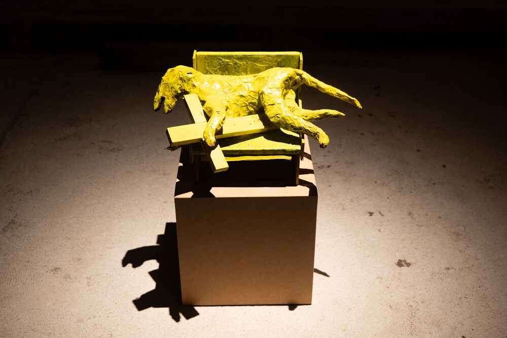 Guillaume Bruère, * 1976 in Châtellerault (FR), lebt in Berlin (DE), O.T., (Agnus Dei), 2002, div. Materialien, KULTUMUSEUMGraz, aus: Glaube Liebe Hoffnung (2018)