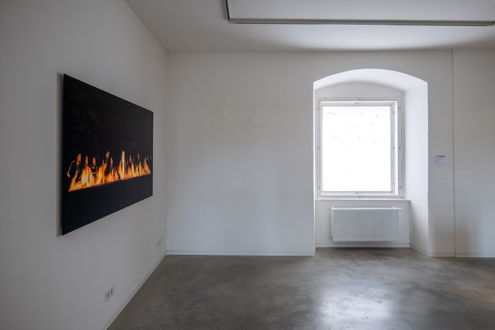 Julia Bornefeld* 1963 in Kiel (DE), lebt in Brunneck (IT), The Burning Supper, 2012, UltraSecM, Belichtung Kodak premier, Museumsglas, 104 x 200 cm, Courtesy Galerie Elisabeth & Klaus Thoman Innsbruck, KULTUMUSEUM Graz, aus: reliqte, reloaded: Zu