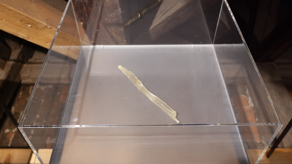 Maaria Wirkkala, * 1954 in Helsinki (FI), lebt in Espoo (FI), Beyond this Point, 2020/25, Glasleiter, Stahl, Tennenrot-Sand,KULTUMUSEUM Graz, aus: HIMMELSCHWER. Transformationen der Schwerkraft (2003) und Maaria Wirkkala: NUN MEHR – MEANTIME (2025