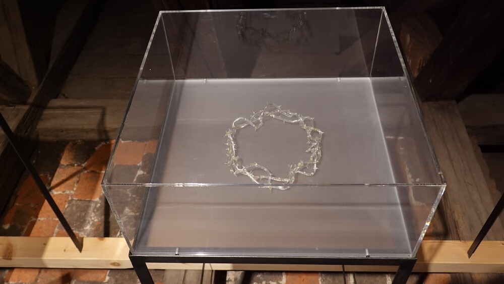 Manfred Erjautz, * 1966 in Graz (AT), lebt in Wien (AT),  Your Own Personal Jesus, 2012–16,  Durch das Funksignal (DCF 77) des Langwellensenders in Mainflingen gesteuerte Turmuhr mit schleichender Sekunde; Christus-Corpus, geschnitzt, mit Bier getönt