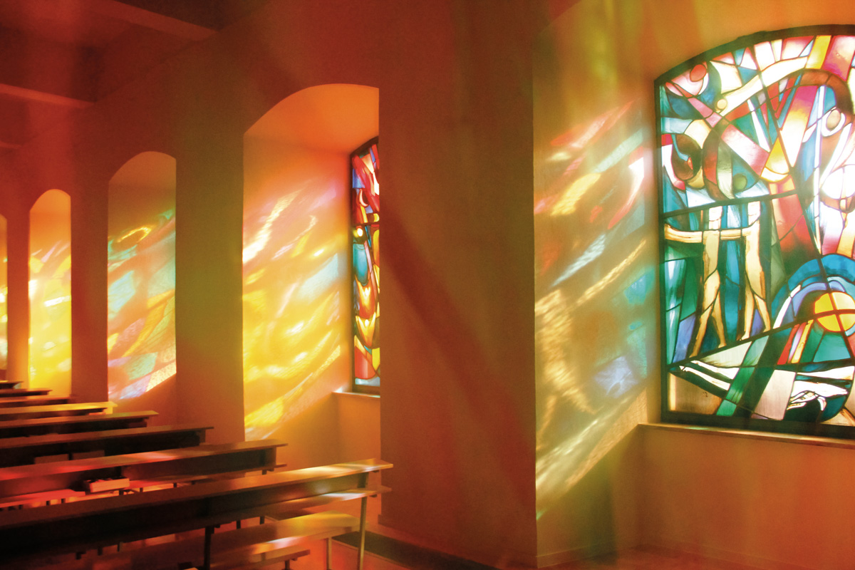 MICHAEL KIENZER Glasfenster und Eingangswand / Glass windows and entrance wall, 1995 | Diözese Graz-Seckau