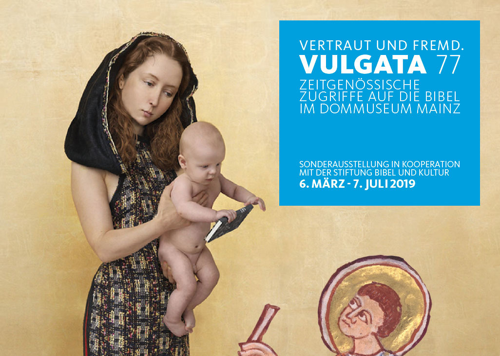 Die Sonderausstellung „VERTRAUT UND FREMD. VULGATA 77 zeitgenössische Zugriffe auf die Bibel“ im Dommuseum Mainz, die auf Initiative der Ökumenischen Stiftung Bibel und Kultur aus Anlass ihres 30. Gründungsjahres initiiert wurde und in Kooperation mit dem KULTUM Graz und dem Dommuseum Mainz realisiert worden ist, geht mit 30 Künstlerinnnen und Künstlern aus Europa in 77 Einzelwerken diesen Fragen nach.