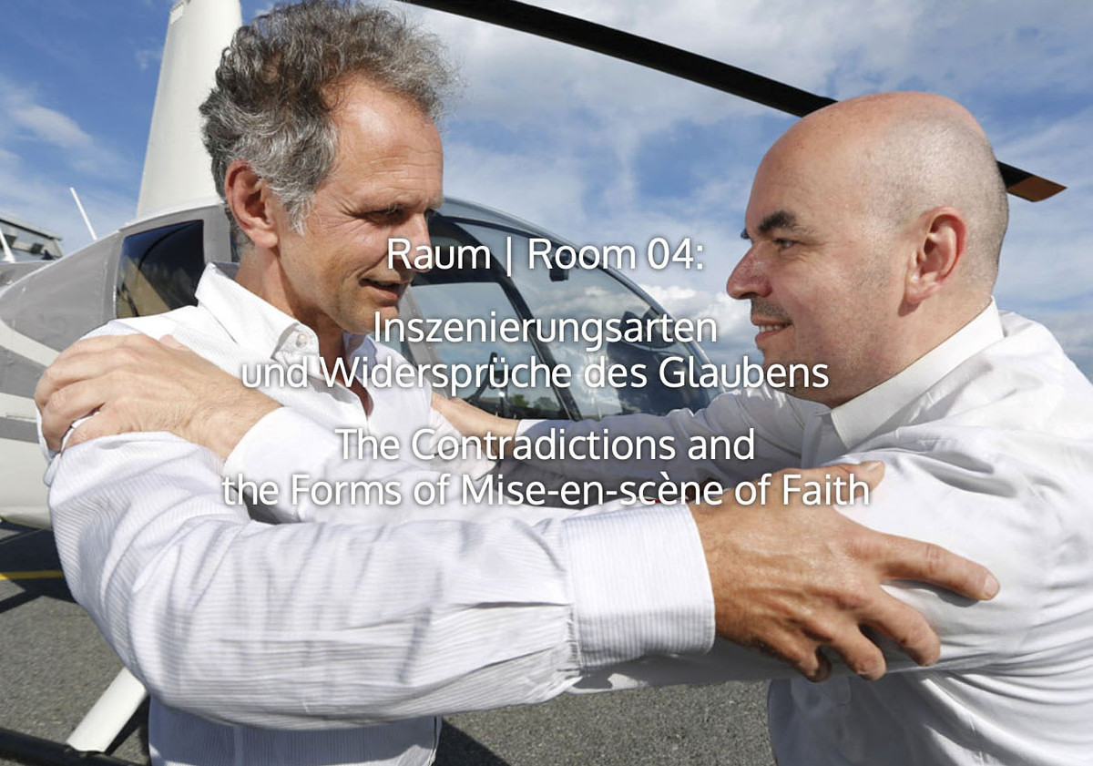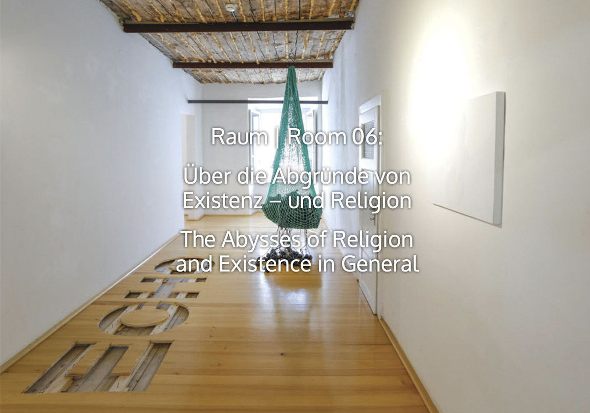 Die Räume 03 - 06 handeln vom ethischen Potential von Kunst, von den Inszenierungsarten des Glaubens im Zeitalter der globalen Medialisierung, von religiösem Fanatismus und künstlerischen Wegen, diesem zu entkommen. Die Abgründe menschlicher Existenz und Religion werden dabei nicht ausgeklammert, im Gegenteil.