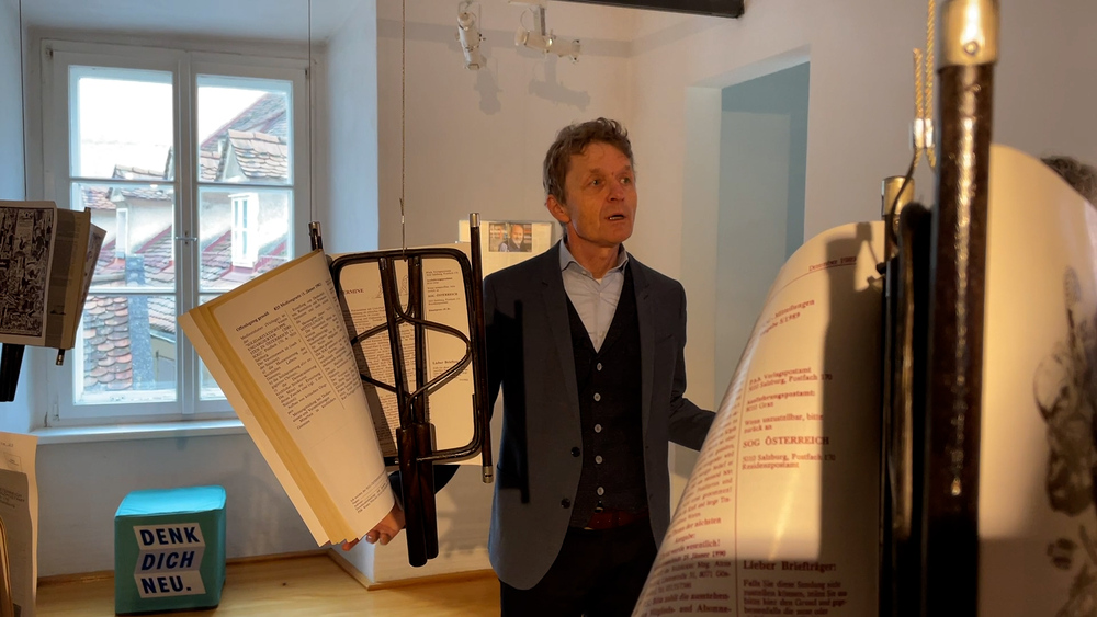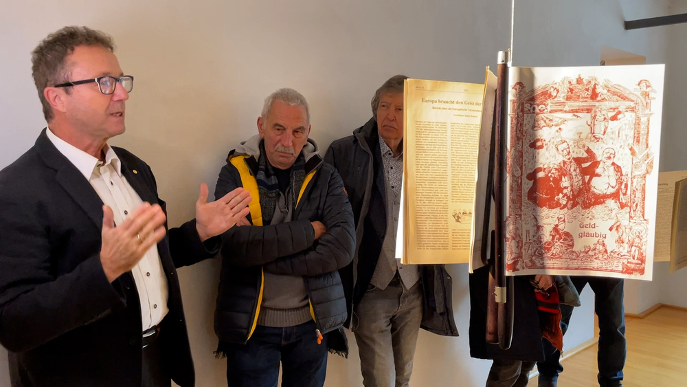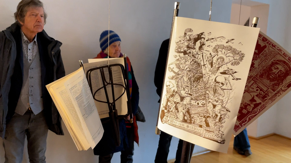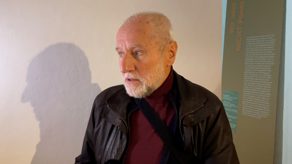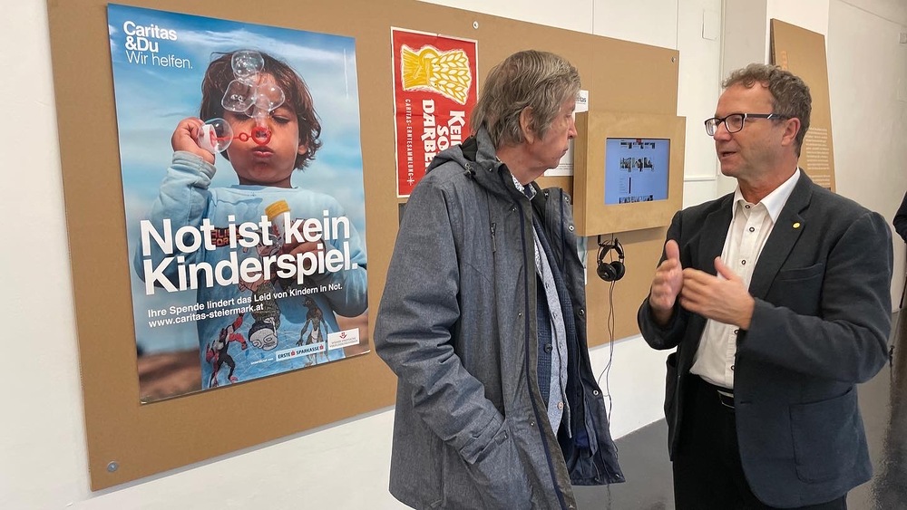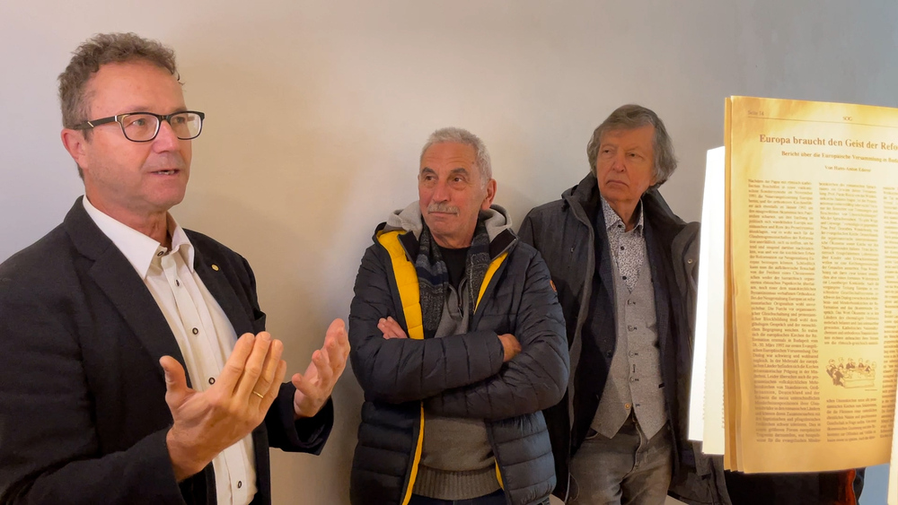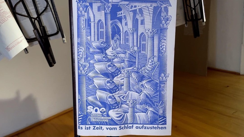 „Höchst spannend war die (vierte) Kuratorenführung mit Alois Neuhold und Georg Plank bei DE PROPGAGANDA FIDE. Ein Stück Kirchengeschichte der 1980er Jahre und der frühen 2010er Jahre. Die Engagierten von damals und ihr Lebensertrag, was die Reformfähigkeit der katholischen Kirche angeht. "Die Botschaft Jesu wird immer interessant sein." So emphatisch Alois Neuhold, der die Zeitschrift SOG von 1986 bis 1992 (wichtige Stücke in der Ausstellung) gestaltet hat. "Was die Kirche mit ihr macht, ist freilich eine andere Frage..." So der Nachsatz. Hans Pabst, ehemaliger "Präsident" der SOG (der Solidaritätsgruppe engagierter Christen in Österreich) (und in den späten 1970er Jahren Leiter des Afro Asiatischen Instituts, hält die katholische Kirche hingegen für "nicht reformierbar". Der erfolgreiche Psychotherapeut ist für das Gespräch extra aus Wien angereist. Georg Plank fand ebenfalls sehr deutliche Worte (und hätte - wenn er noch Pressesprecher des Bischofs gewesen wäre (was er bekanntlich zehn Jahre war) - für heute eine gute Presseaussendung parat gehabt: "Der Papst ist an seinem heutigen Geburtstag leider etwas päßlich, er hat nämlich zum Frühstück eine Sachertorte gegessen, die ihm die Österreichischen Bischöfe gestern geschenkt hatten. (Ich meine das natürlich ironisch.") Der freundliche Gesprächston als Resümee des Ad-limina-Besuchs sei jedenfalls das Selbstverständliche eines Gesprächs, nicht ein Erfolg, fand Plank: "Etwas zu ruhig!".