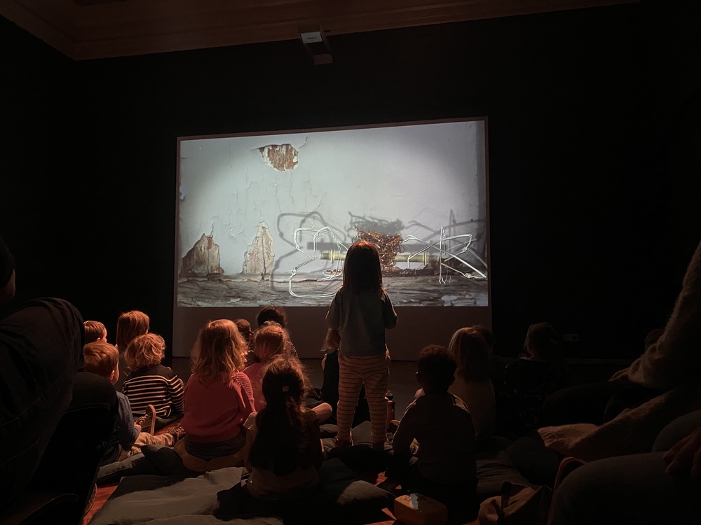 Umgeben von Eltern, Freund*innen und Geschwistern haben wir es uns auf Pölstern gemütlich gemacht. Dort lässt es sich am besten stauenen! Zwischen den Filmen und danach konnten wir selber Expermentieren. SO lebendig war Film noch nie!