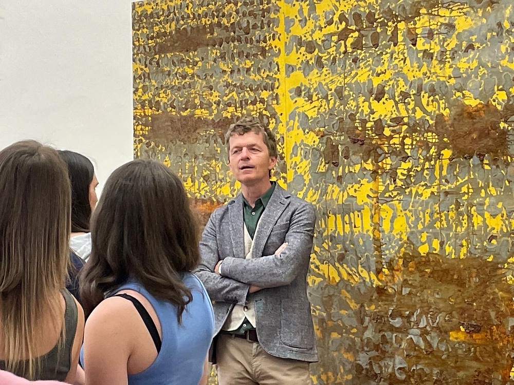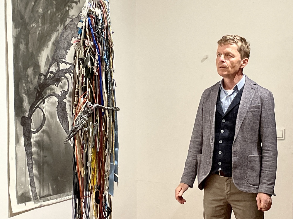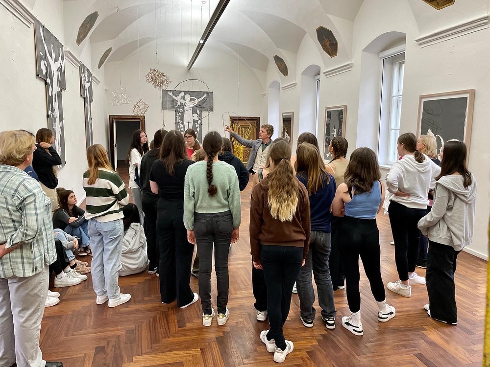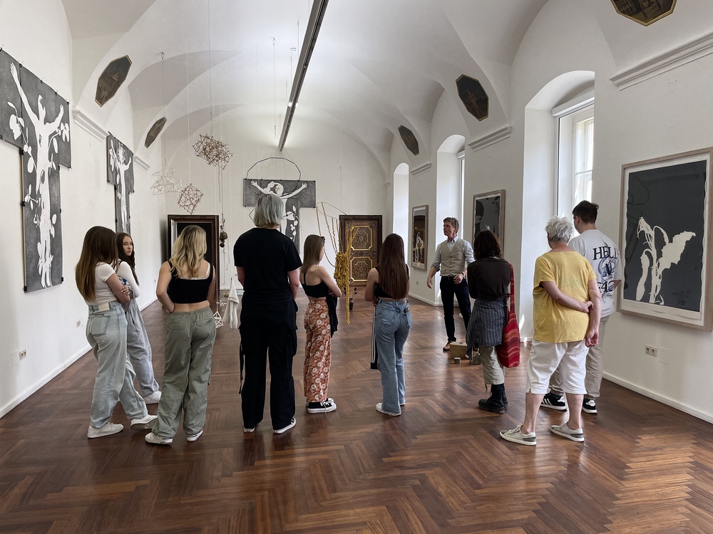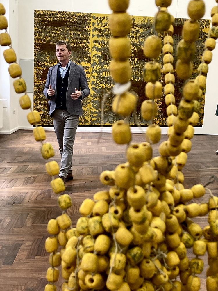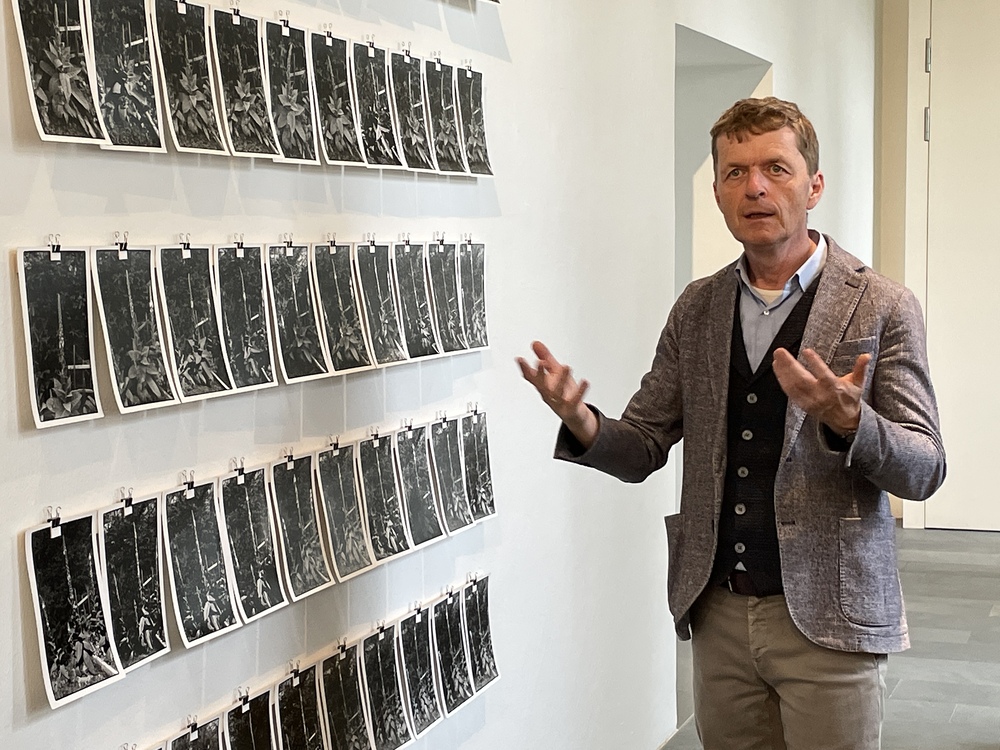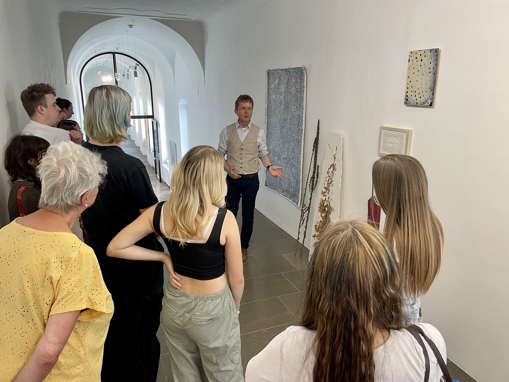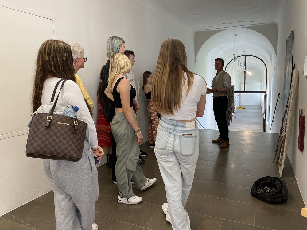 Die Auseinandersetzung mit zeitgenössischer Kunst und wie diese auf die eigenen Gedanken Einfluss nehmen kann, erklärt Kurator JOHANNES RAUCHENBERGER beim Gehen durch die Ausstellung.