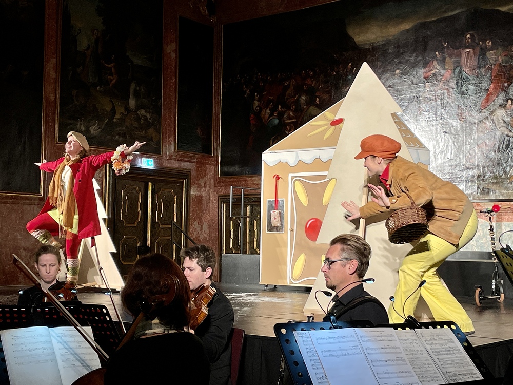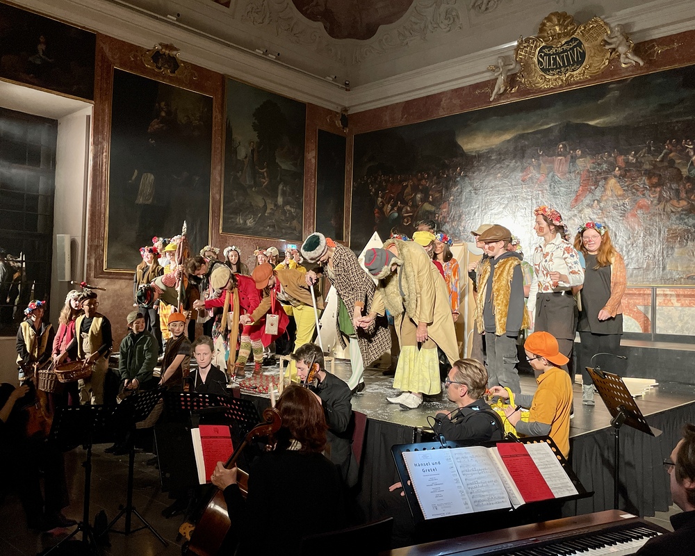 Wer kennt nicht „Hänsel und Gretel“, das Märchen in dem zwei Kinder aus ärmlichem Elternhaus von deren Mutter in den Wald geschickt werden, um Beeren zu pflücken? In der Abenddämmerung treffen sie auf das Sandmännchen und verbringen eine Nacht voller märchenhafter Träume im Freien. Doch bereits nach wenigen Stunden werden sie vom Taumännchen geweckt und das wahre Abenteuer beginnt: In der Ferne erscheint ein kunterbuntes Lebkuchenhaus; schnell wird vom Süßen genascht, bis aus dem Inneren eine geheimnisvolle Stimme ertönt: „Knusper, knusper Knäuschen - wer knuspert mir am Häuschen?“. Mit Live Orchester, Opernsänger*innen, dem Lebkuchenchor des Grazer Ferdinandeums und einem essbaren Bühnenbild!