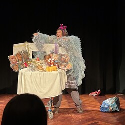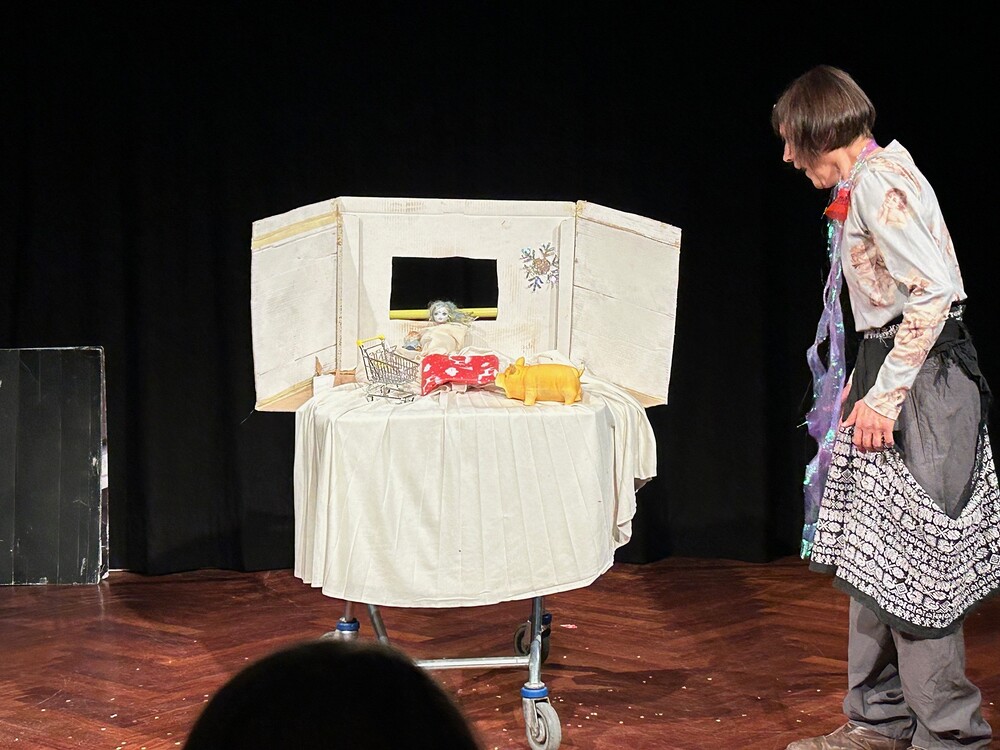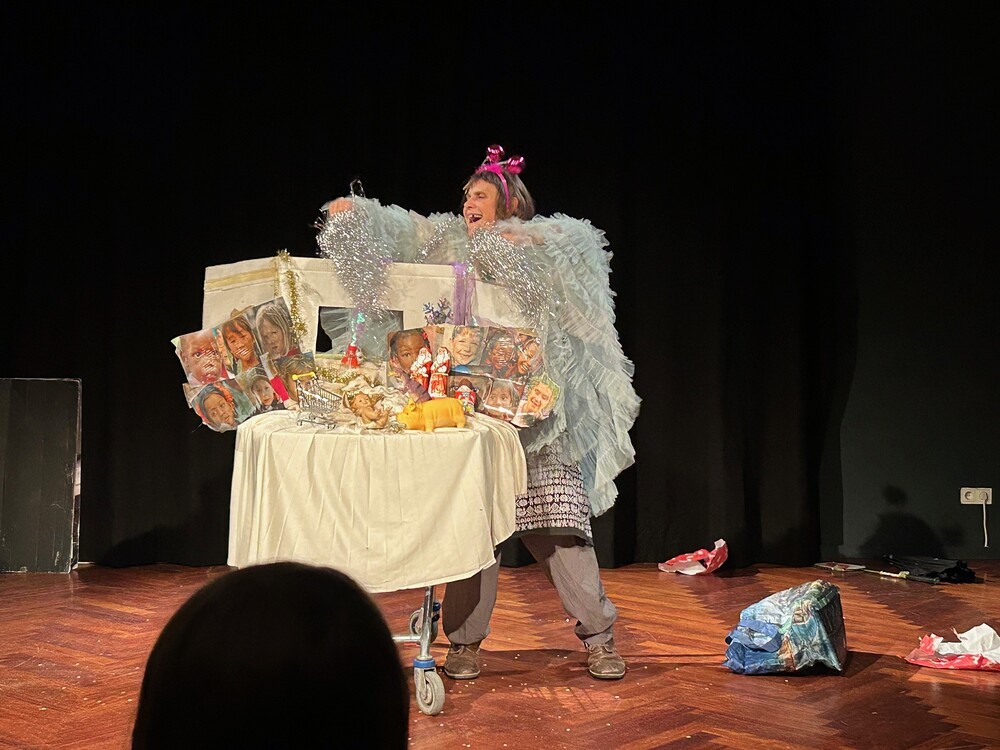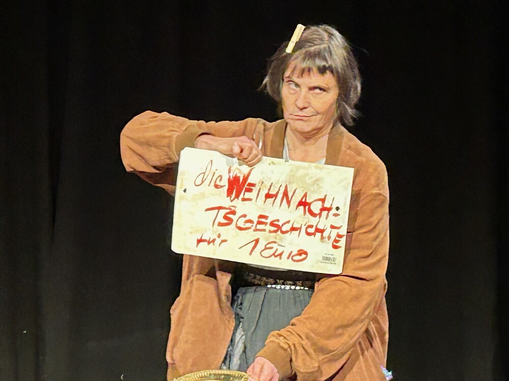 Elsa, die Frau von der Straße, ist Komödiantin, Müllsammlerin und „Engel“. Alle Dinge, die sie auf ihrem Weg findet, bewahrt sie in ihrem Einkaufswagen auf und erzählt damit Geschichten. In der Adventszeit hat sie die Weihnachtsgeschichte auf dem Programm...