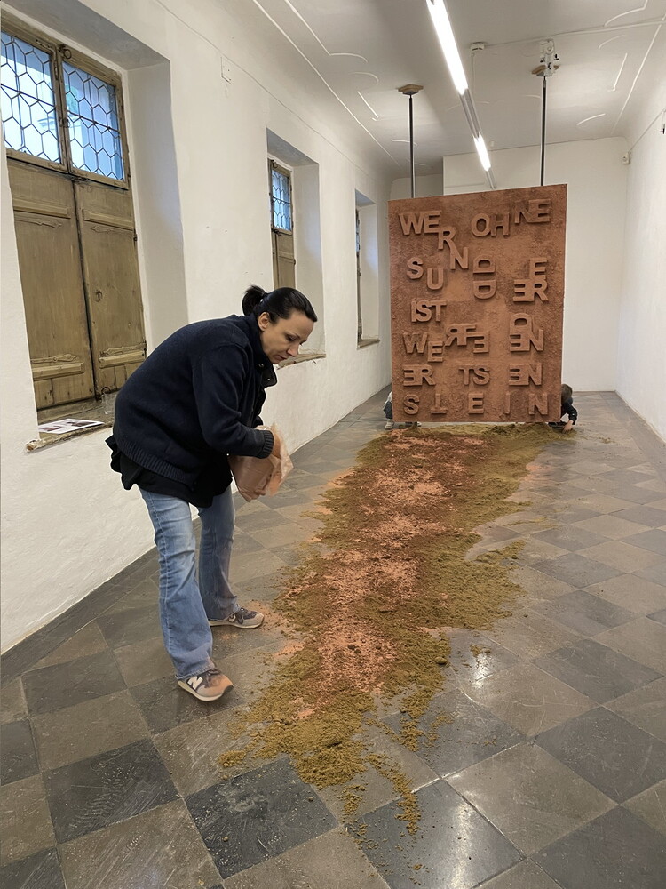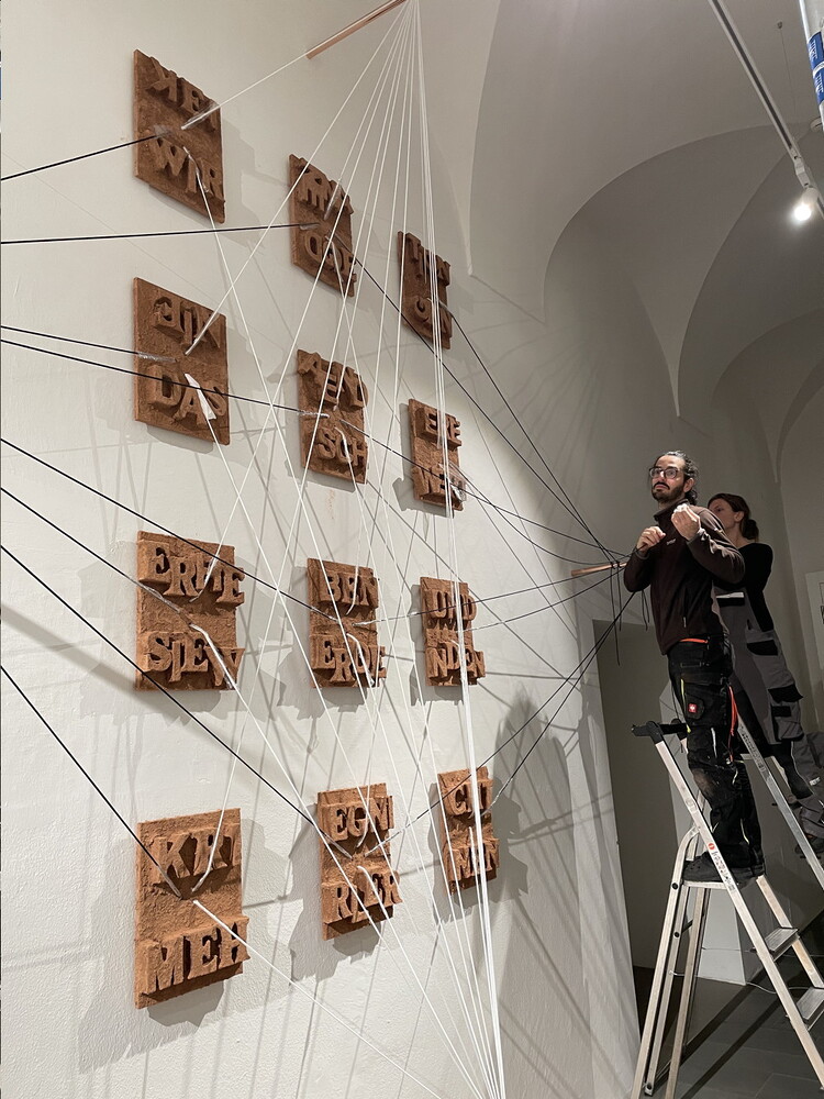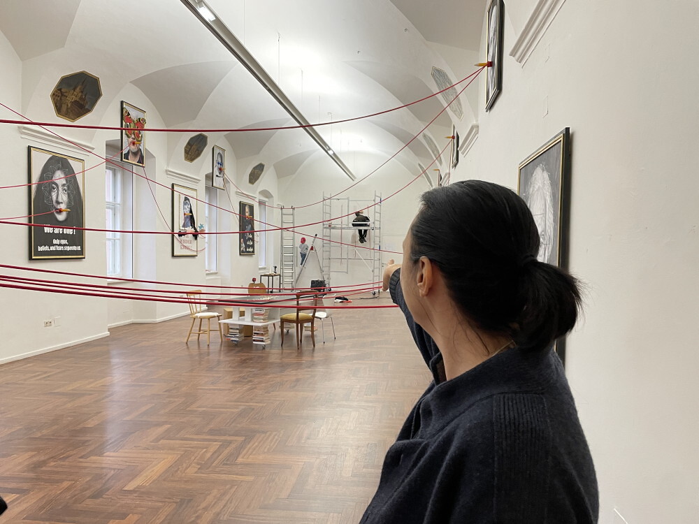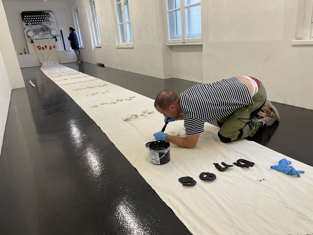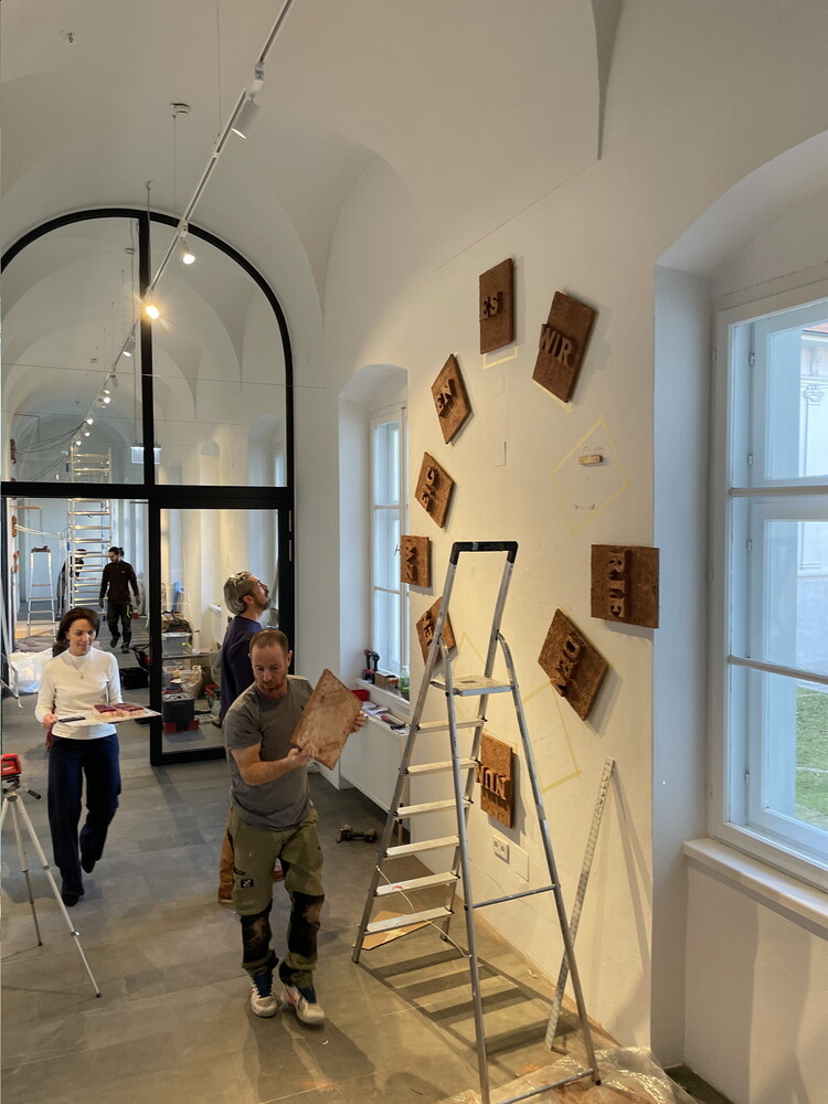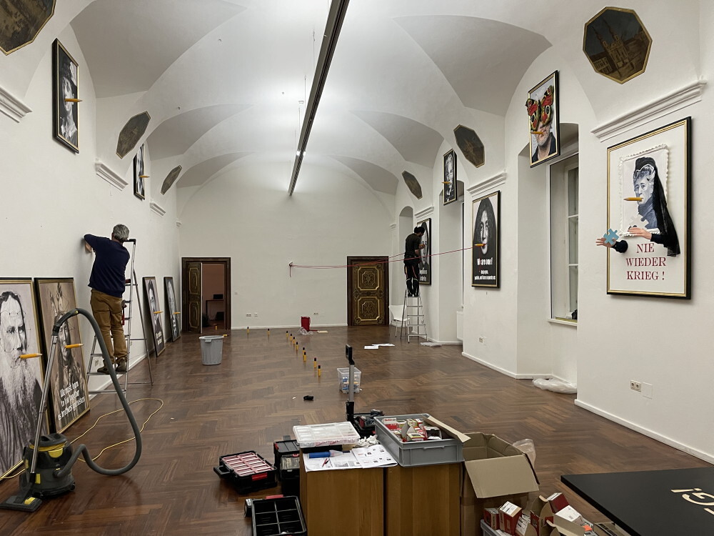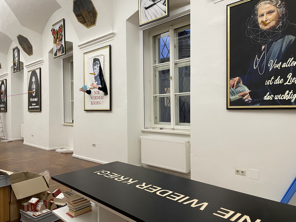 Aufbau der Ausstellung: Zenita Komad: NIE WIEDER KRIEG!