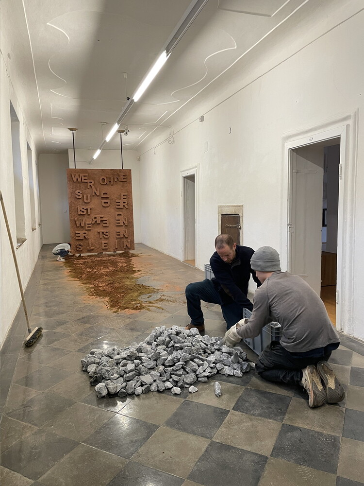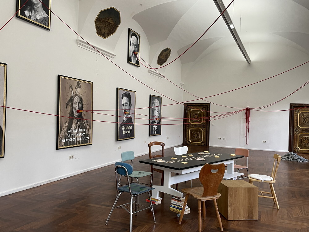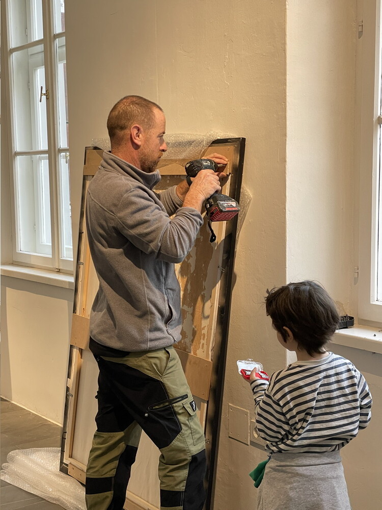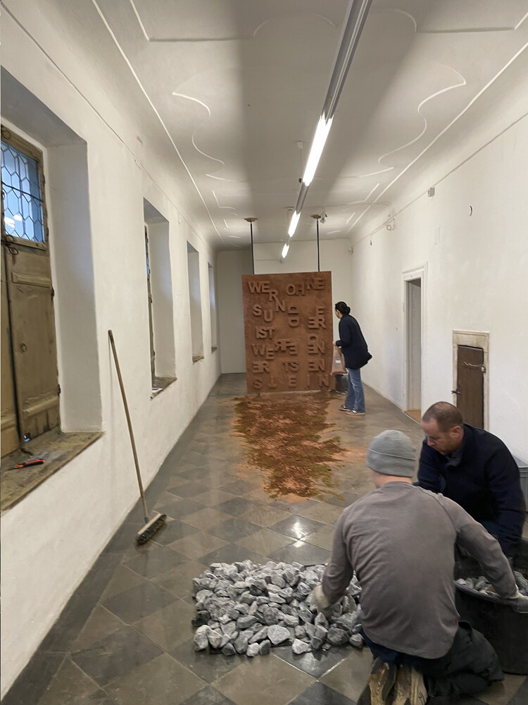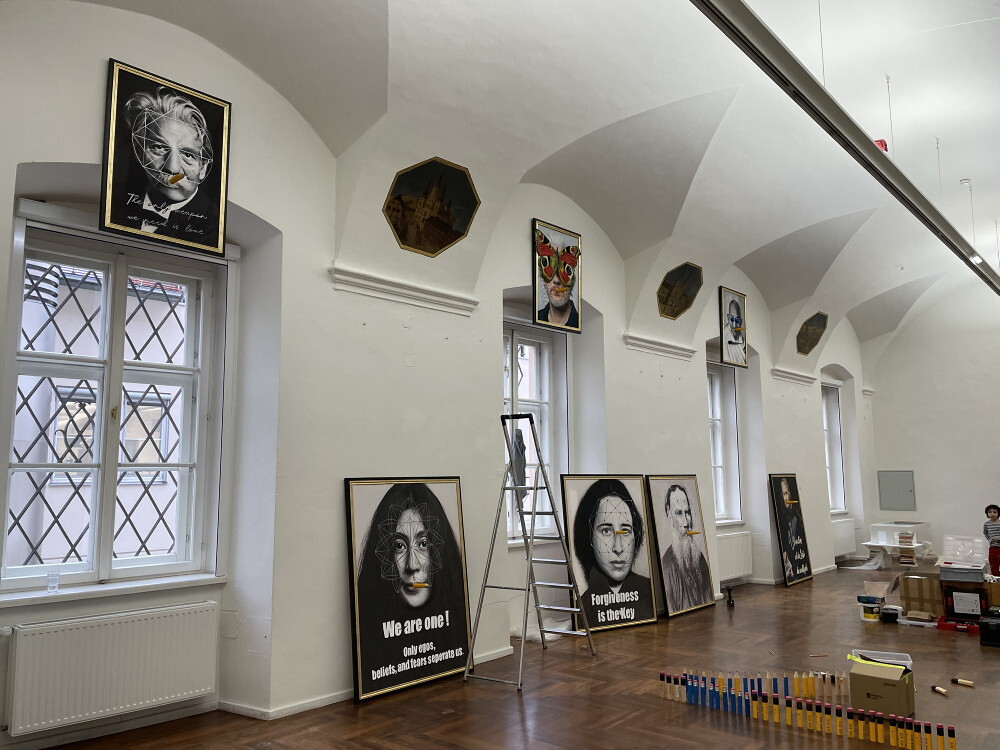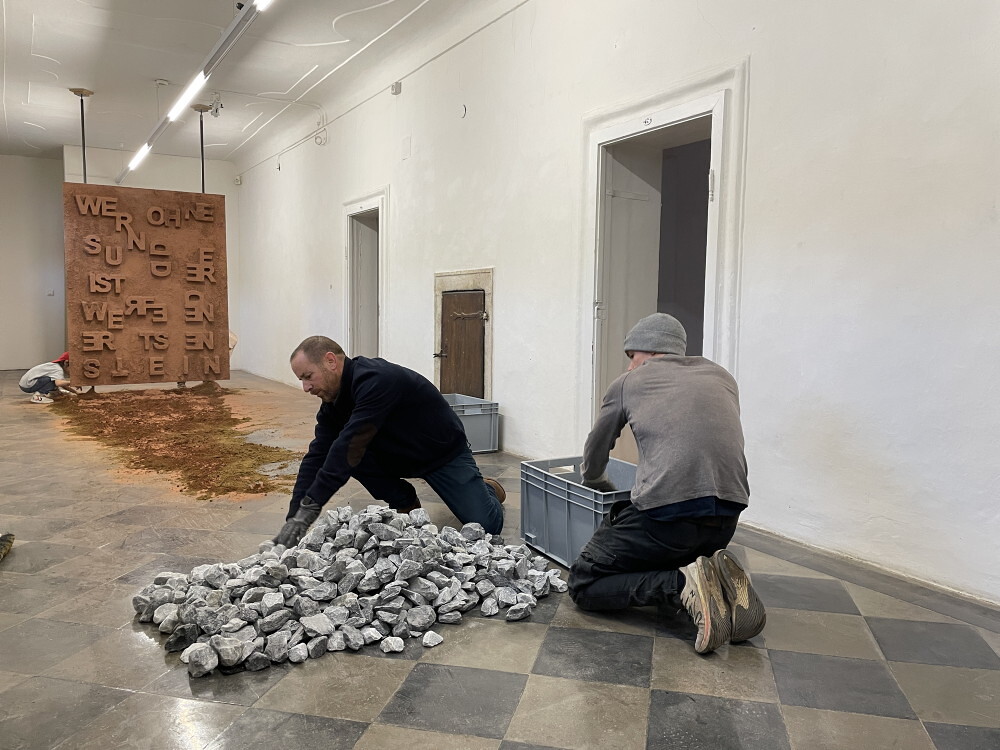 Aufbau der Ausstellung: Zenita Komad: NIE WIEDER KRIEG!