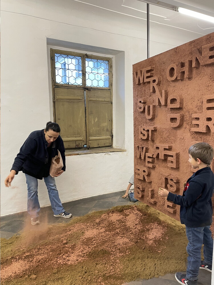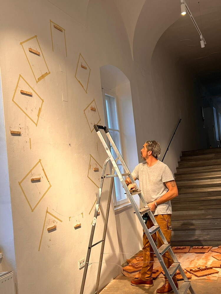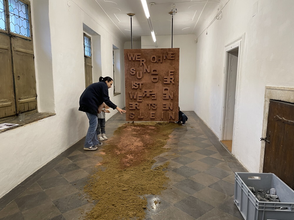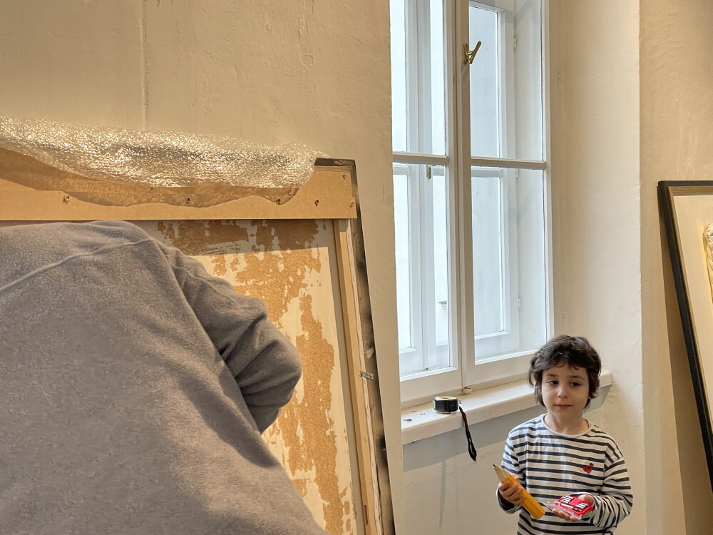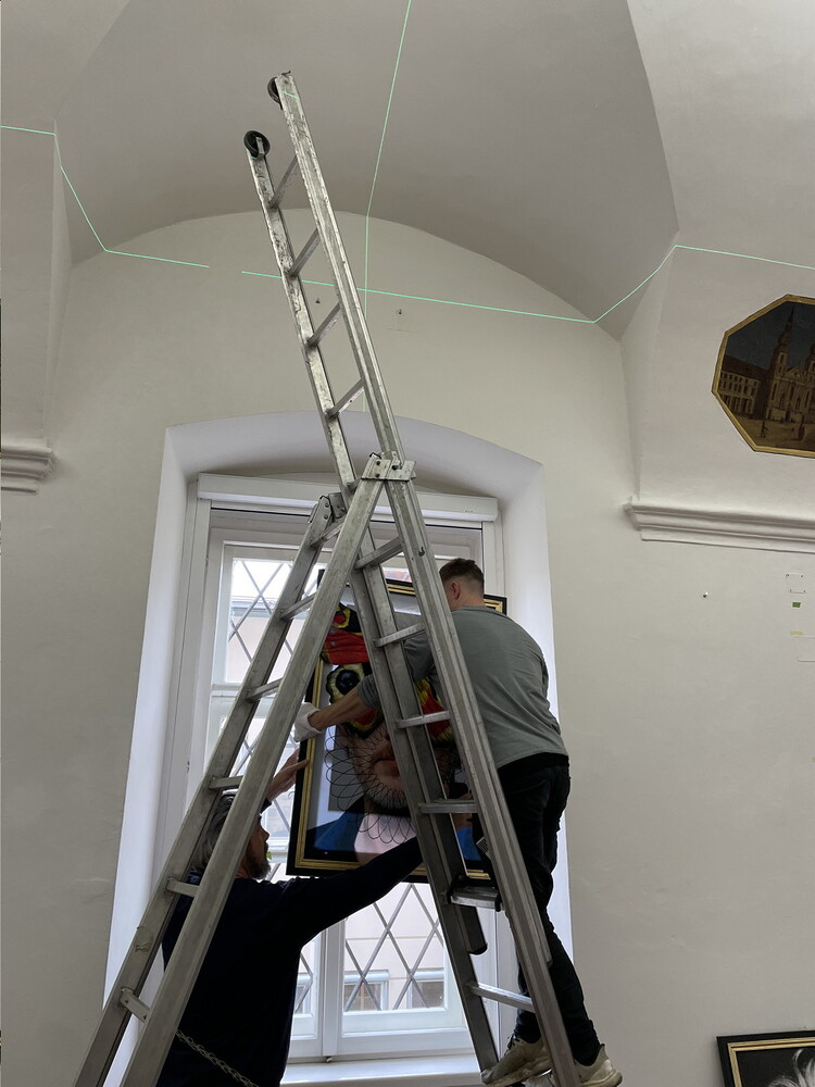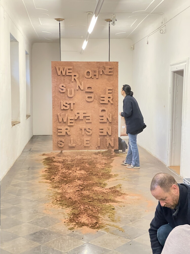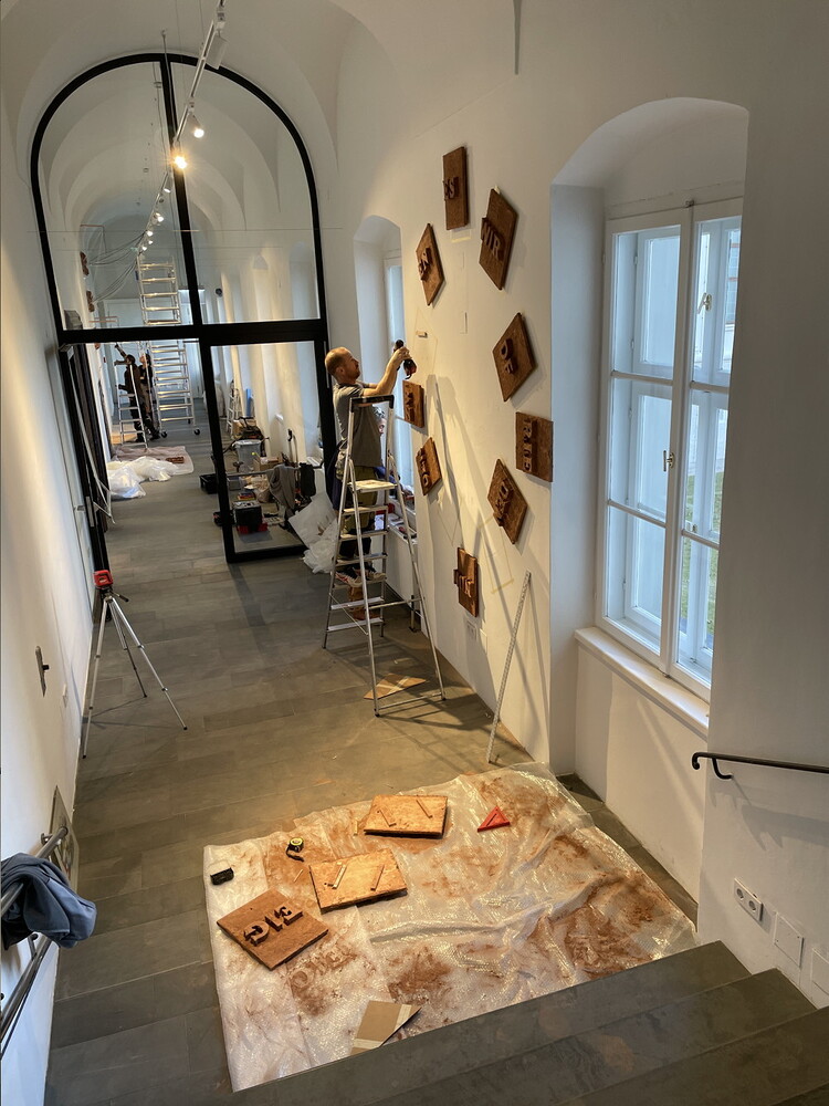 Aufbau der Ausstellung: Zenita Komad: NIE WIEDER KRIEG!