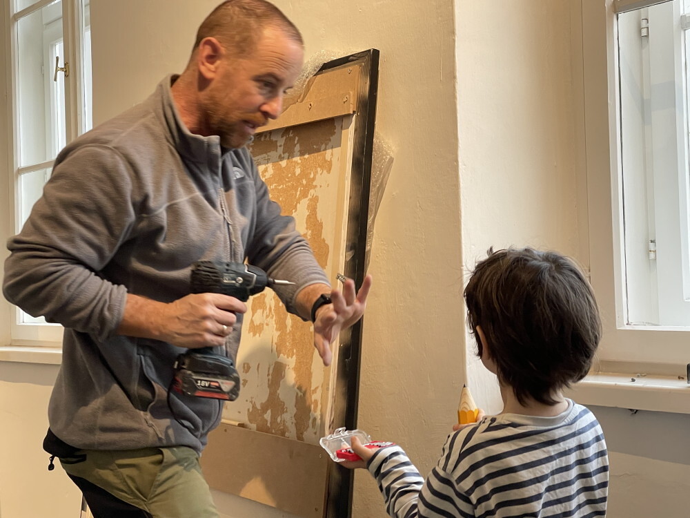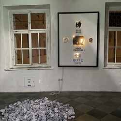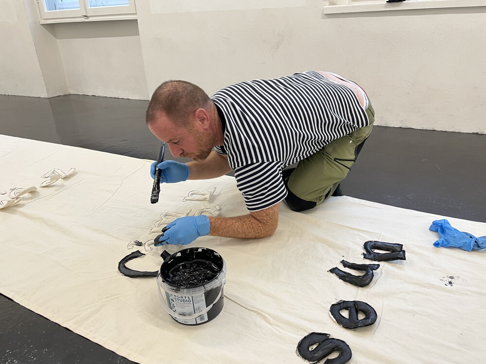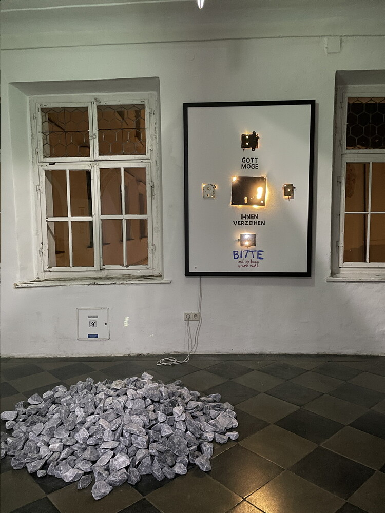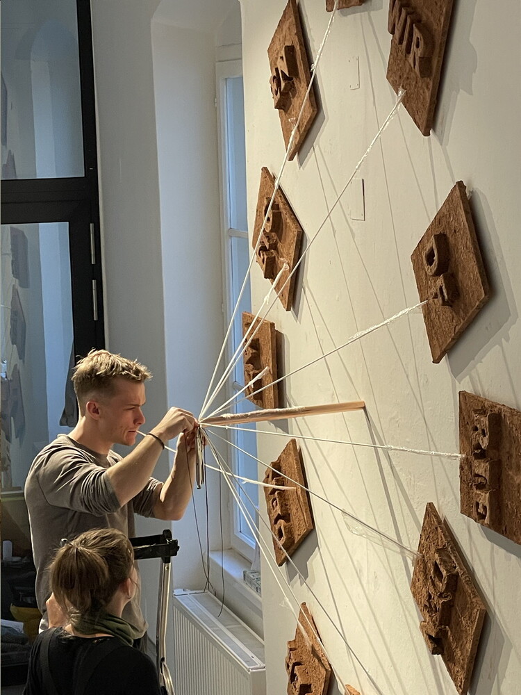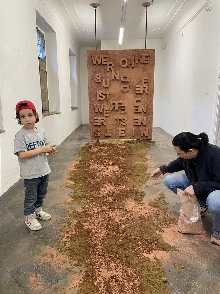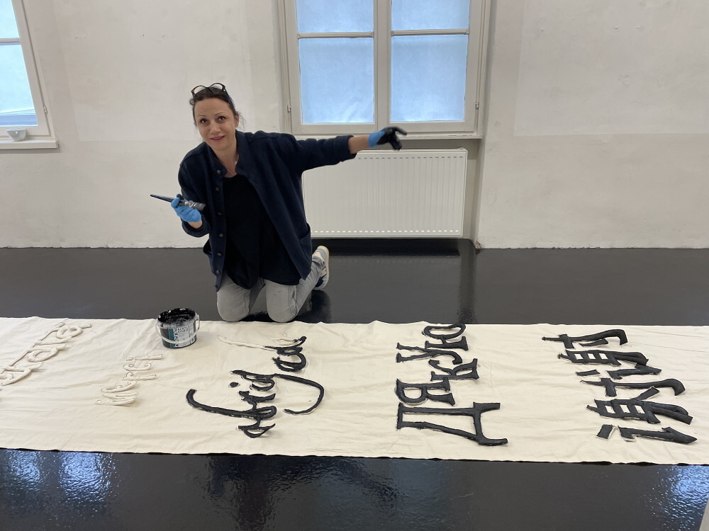 Aufbau der Ausstellung: Zenita Komad: NIE WIEDER KRIEG!