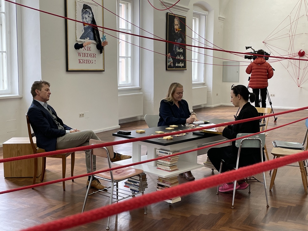 Sylvia Andrews im Interview mit Zenita Komad und Kurator Johannes Rauchenberger. ORF-Steiermark zu Gast im Kultum Graz.