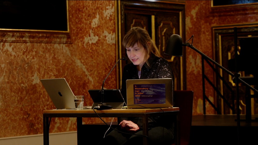 Für den künstlerischen Teil am Abend im Minoritensaal (ab 19 Uhr) hat Literatur-Kuratorin Barbara Rauchenberger die in Wien und Berlin lebende Autorin, Kommunikations- und Sprachwissenschaftlerin Judith Nika Pfeifer und den Wiener Kulturphilosophen und Schriftsteller Thomas Ballhausen um Schreibaufträge gebeten; Neue Musik, die sich mit der Höhlenthematik beschäftigt, ist der zweite integrierende Teil des Kunst-Teils der Blumenbergtage: Die international gefragte Altistin Helena Sorokina interpretiert Werke von des Grazer Komponisten Martin Ritter, von Feliz Anne Reyes Macahis und Hannes Kerschbaumer (Uraufführung) (Kurator Neue Musik: Benedikt Alphart). Die Werke sind für Stimme und Elektronik geschrieben und werden im Minoritensaal mehrkanalig wiedergegeben.