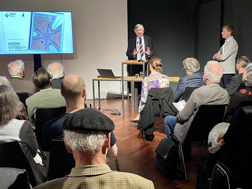 Der Theologe Philipp Harnoncourt (1931–2020) setzte ab 2011 nach seinem 80. Geburtstag, den er mit einem zeitgenössischen Kunstprojekt zur Trinität beging, und seinem daraus hervorgegangenen Wunsch, die zunehmend verfallene ehemaligen Heiligen-Geist-Kapelle in Bruck an der Mur wiederherzustellen, ein umfassendes und in jederlei Hinsicht spektakulär zu nennendes Projekt in Gang, dessen Verlauf und Ergebnis in dem im ALBUM-Verlag erschienenen und von Alexander Kada gestalteten Buch beschrieben sind: Dieses Werk wird nun an seinem vierten Todestag im KULTUM in Graz vorgestellt.