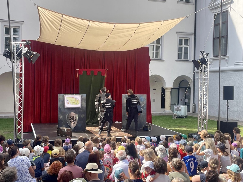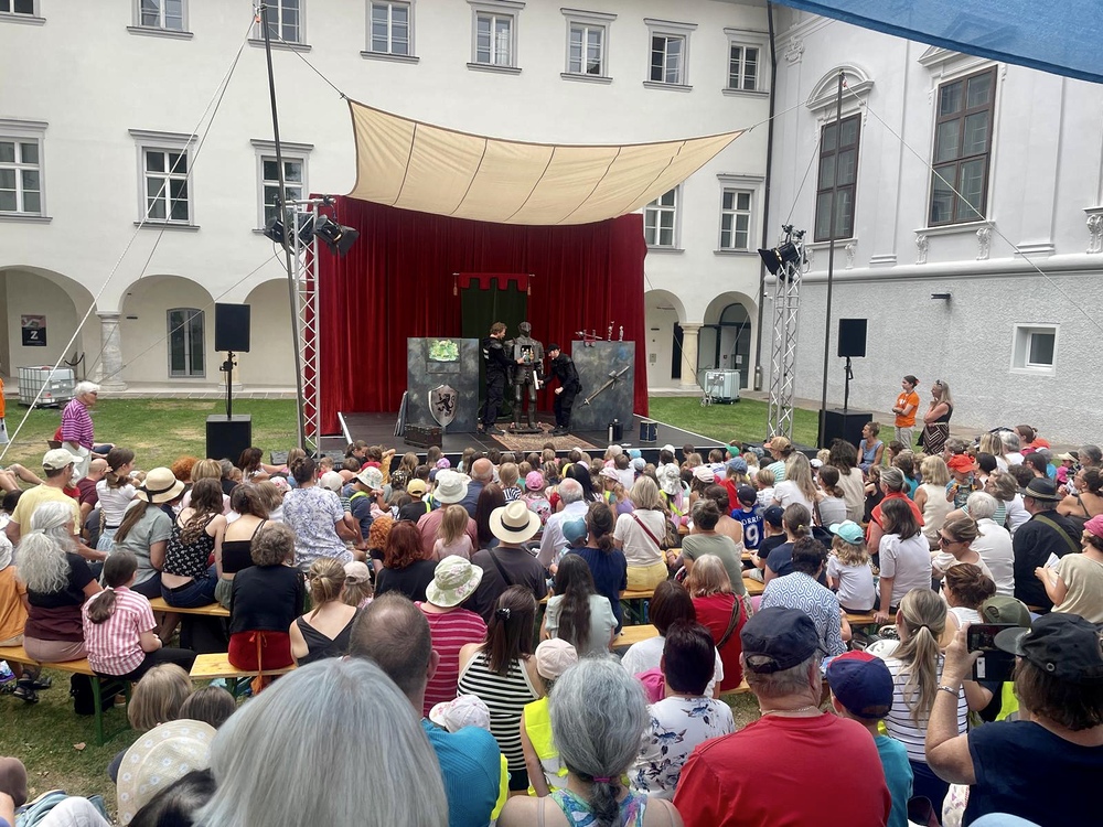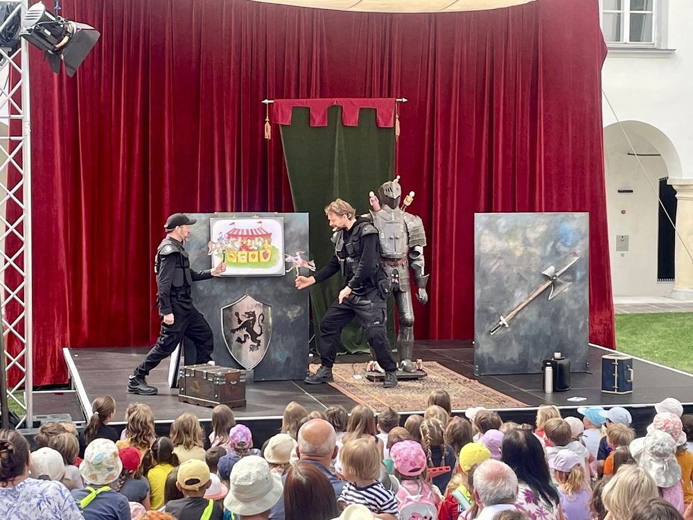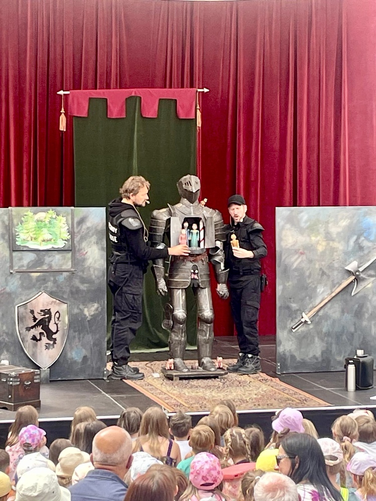 Also eins ist sicher: Dies hier ist ein Ritterstück. Nein, eigentlich ein Ritterinnenstück. Oder sagen wir: Ein mittelalterliches modernes Märchen. Es muss gezaubert, gekämpft und gerätselt werden auf dieser turbulenten Reise. Martha lernt so einiges – auch, dass man nicht jedes Problem mit dem Schwert lösen kann. Außerdem bezaubern uns in Drachenblut & Blümchenpflaster Kalle und Peter, die all ihre Zartheit aufbringen müssen, um diesen wilden Kampf des mutigen Rittermädchens zu begleiten. Ein neues, mehrfach preisgekröntes Figurentheater der La Strada-Allstars.