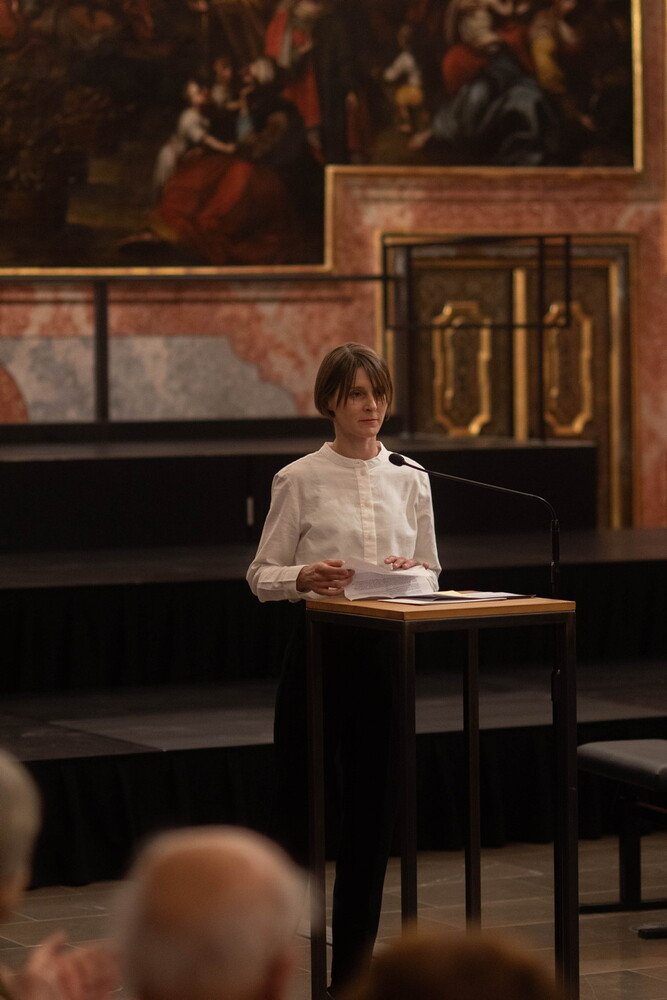 Elisabeth Koller bedankte sich bei Bischof Wilhelm Krautwaschl, bei Walter Prügger, dem Ressortleiter für Bildung, Kunst und Kultur, und bei den Bischöfen Johann Weber und Egon Kapellari: "Sie alle haben nicht nur das Kulturzentrum bei den Minoriten unterstützt, sondern stets die Auseinandersetzung von Kirche mit Kunst und Kultur gefördert – auch in ihrer kritischen Dimension. Ihre Offenheit und ihr Vertrauen in das Wirken dieses Hauses sind ein starkes Zeichen dafür, dass Kunst und Kirche in fruchtbarem Dialog stehen können. Ein besonderer Dank gebührt dem unglaublichen Team des Kulturzentrums bei den Minoriten, das dieses Erbe mit so viel Herzblut weiterführt. Es bedeutet uns viel zu wissen, dass Josef Finks Geist hier weiterlebt – im Sinne einer fortlaufenden Weiterentwicklung dieses Ortes, der nicht nur bewahrt, sondern lebendig bleibt und Brücken baut."