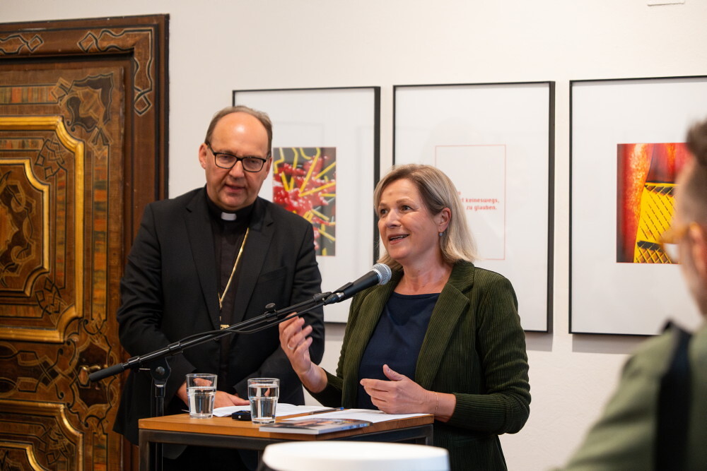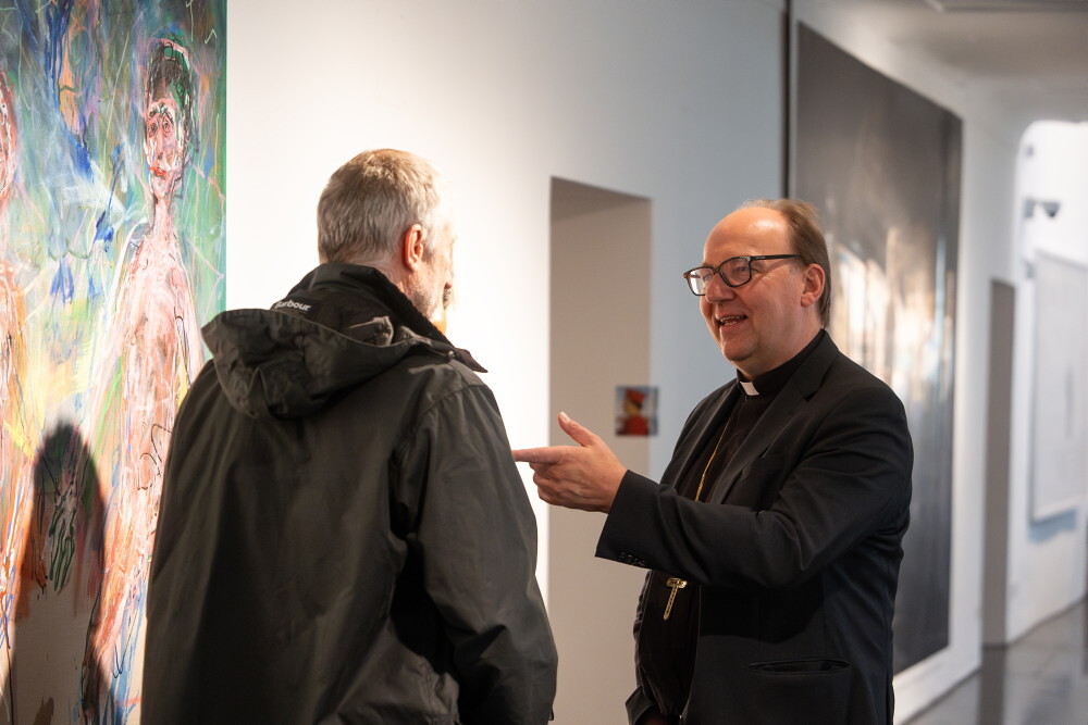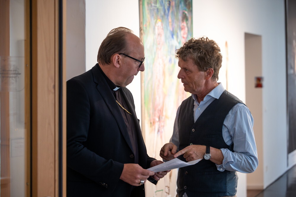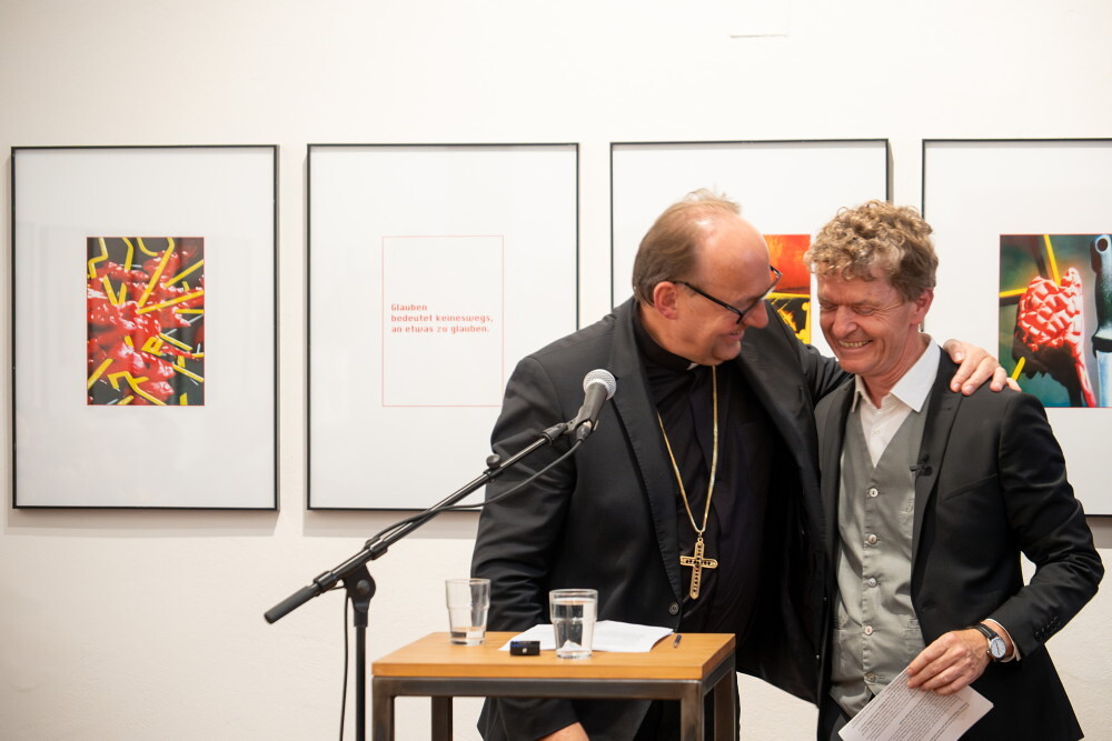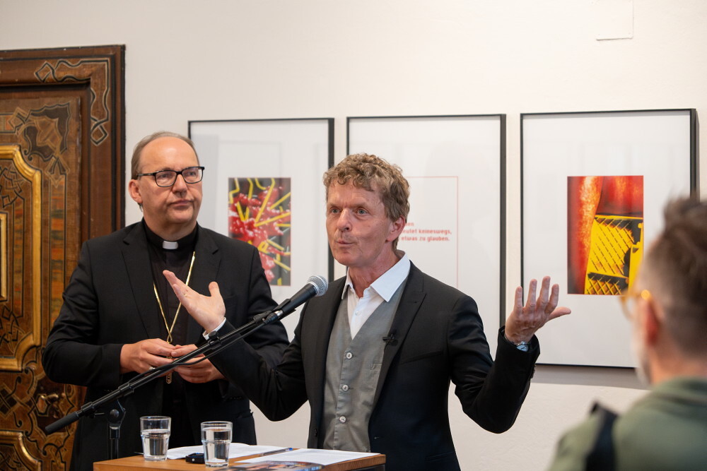 In der Ausstellung gebe es sehr deutliche, kritische Bildpositionen, die vor jeder Form des religiösen Fundamentalismus warnen und dies sei wichtiger denn je, betonte der Kunstbischof und sagte: "Ob christlich, jüdisch, muslimisch oder hinduistisch - Gewalt im Namen Gottes, ist immer ein Verbrechen. Religiöser Fundamentalismus erklärt Andersdenkende zu Feinden, die auszurotten seien." Kunst hingegen schaffe demgegenüber Begegnungszonen, wo es zu menschlicher Berührung kommen könne - oder zumindest zu Momenten positiver Verunsicherungen, die aus den ideologischen Bubbles herauslocken.