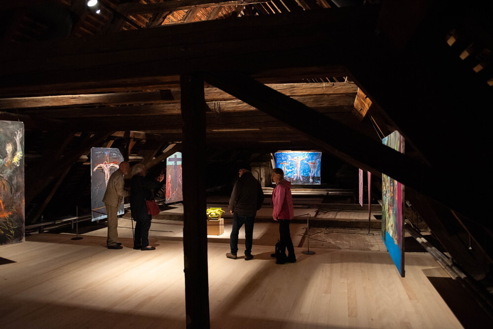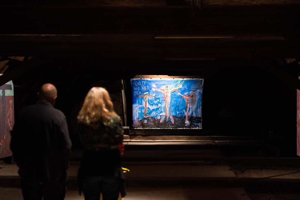 "Die eindeutig religiösen Oeuvres gibt es in der zeitgenössischen Kunst höchst selten - aber es gibt die vielen Verweise, Spuren, versteckten oder offensichtlichen Bildcodes in der riesigen 'Ressource Gegenwartskunst'", konstatierte der Bischof. Johannes Rauchenberger habe diese Ressource mit großer Lust und Ausdauer ausgebeutet, wovon die Ausstellung zeuge.