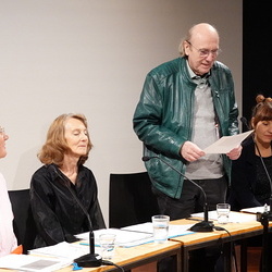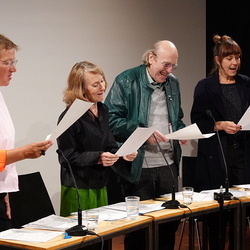 Die literarischen Überschreibungen von Benrath, Wimmer und Pfeifer wurden begleitet von der renommierten Vokalistin Lauren Newton, die 20 Jahre lang mit Ernst Jandl in Performances aufgetreten ist. Ganz in dieser innovativen Tradition entwickelten die vier an diesem außerordentlichen Abend eine musikalische Sprach-Collage aus Loops, Grooves und variantenreichen Chaosfaktoren, mit denen sie, angelehnt an Jandls Sprachwitz und Sprachrhythmus, seine Strukturprinzipien ins Heute überführten und ein Feuerwerk des Auditiven zündeten.