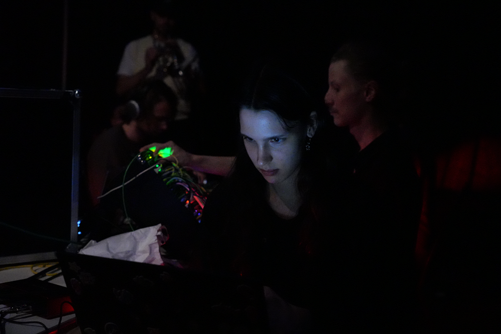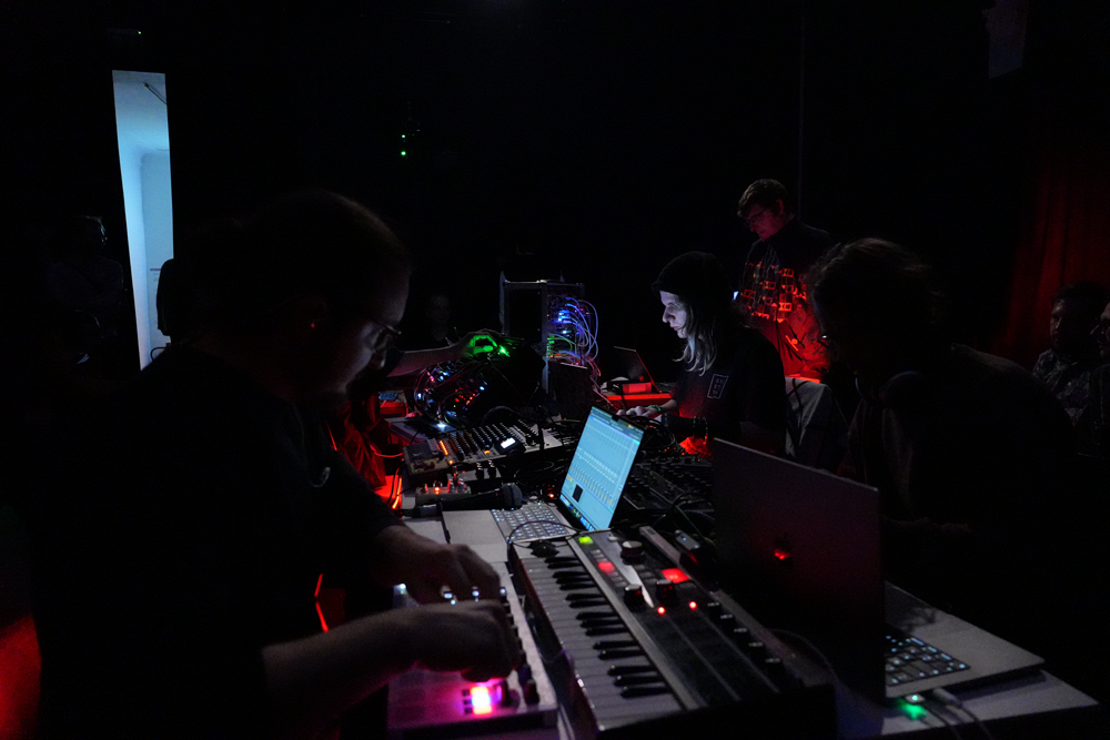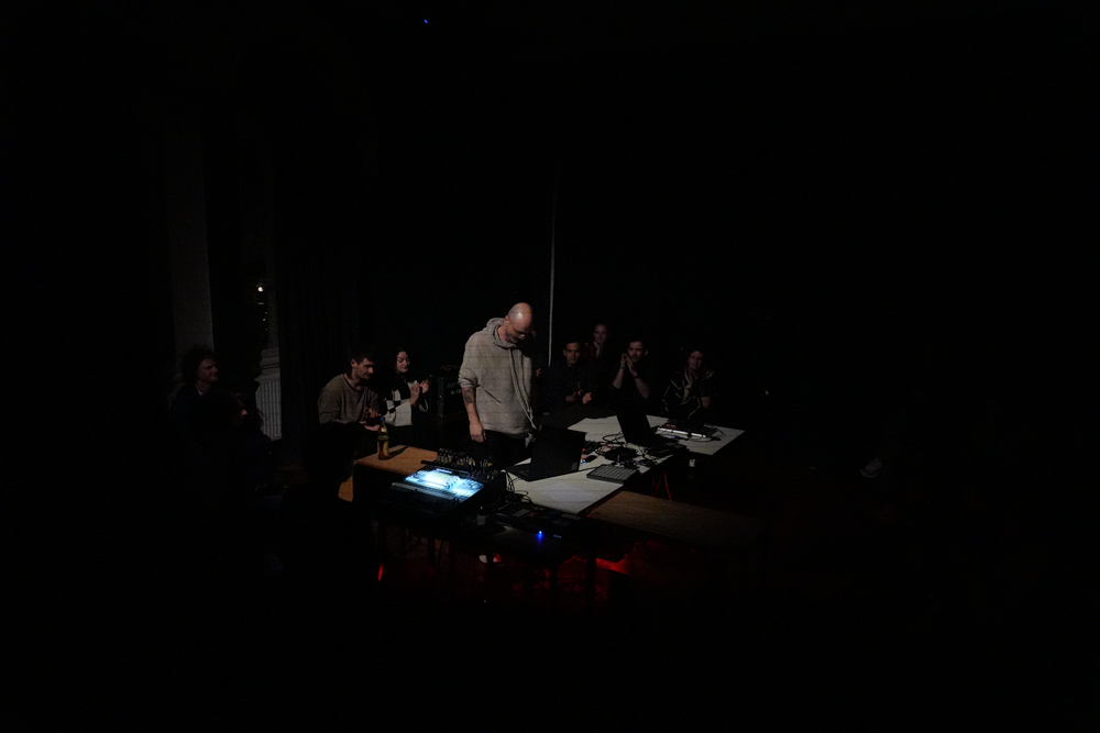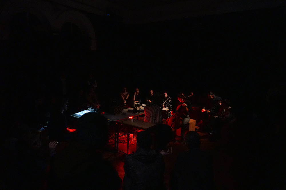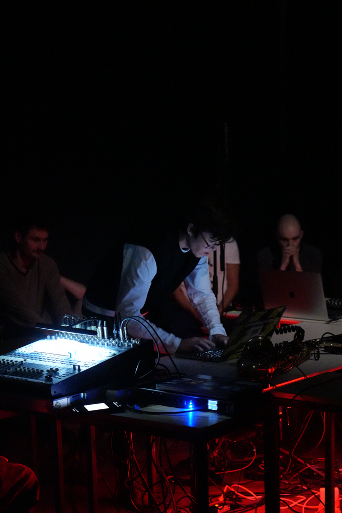 Das äußerst zahlreich erschienene Publikum genoss das zeitlich ausgedehnte Programm (Beginn war um 20.00 und geschlossen wurde mit einer Gruppen-Improvisation nach 00:00) mit Live-Performances von: Jess Robinson + Josten Myburg, Carmen Pomet, Filip Dobrocky, Francesco Gulic, Aleksandra Gudkova, 230, Elias Rückborn, Static Choice, Ilia Smirnov, Anton Stuk und Gerhard Eckel.