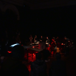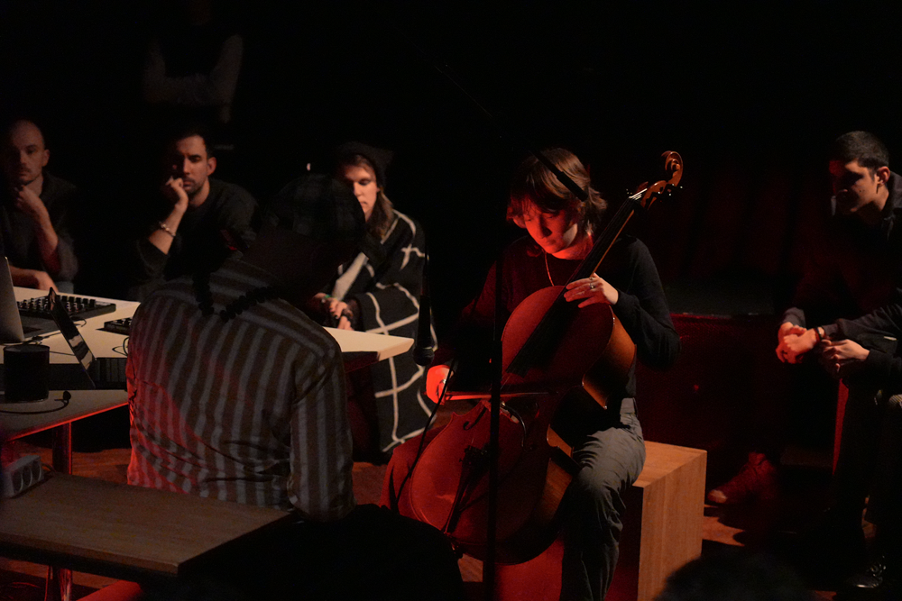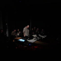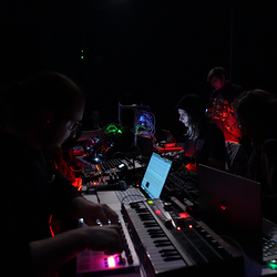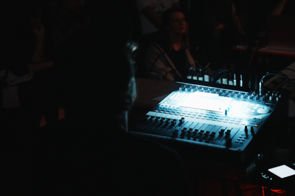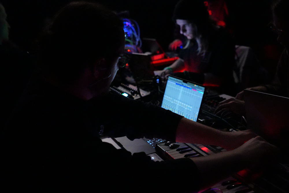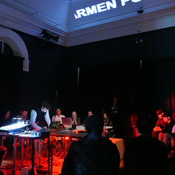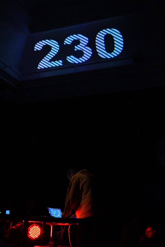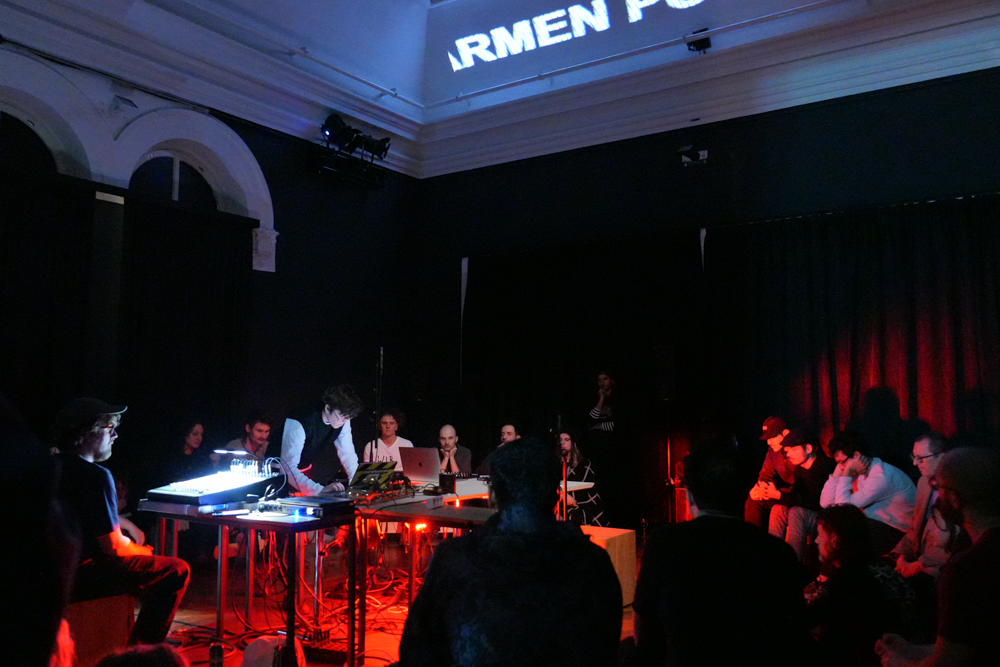 Das äußerst zahlreich erschienene Publikum genoss das zeitlich ausgedehnte Programm (Beginn war um 20.00 und geschlossen wurde mit einer Gruppen-Improvisation nach 00:00) mit Live-Performances von: Jess Robinson + Josten Myburg, Carmen Pomet, Filip Dobrocky, Francesco Gulic, Aleksandra Gudkova, 230, Elias Rückborn, Static Choice, Ilia Smirnov, Anton Stuk und Gerhard Eckel.
