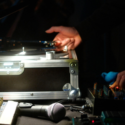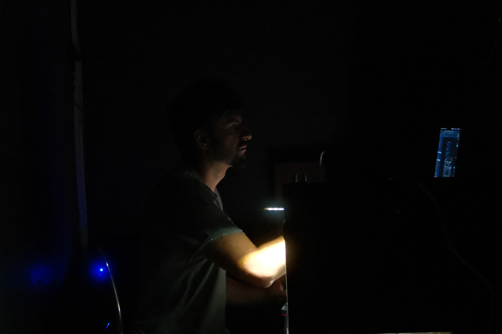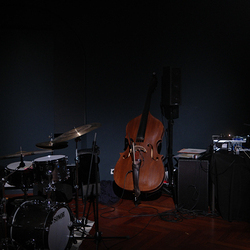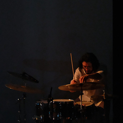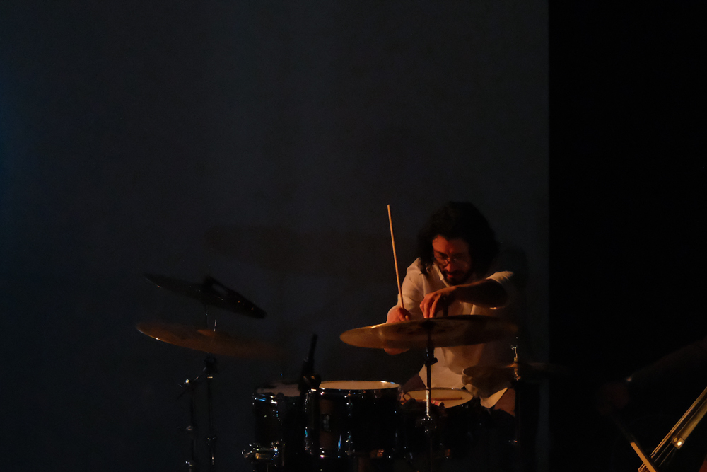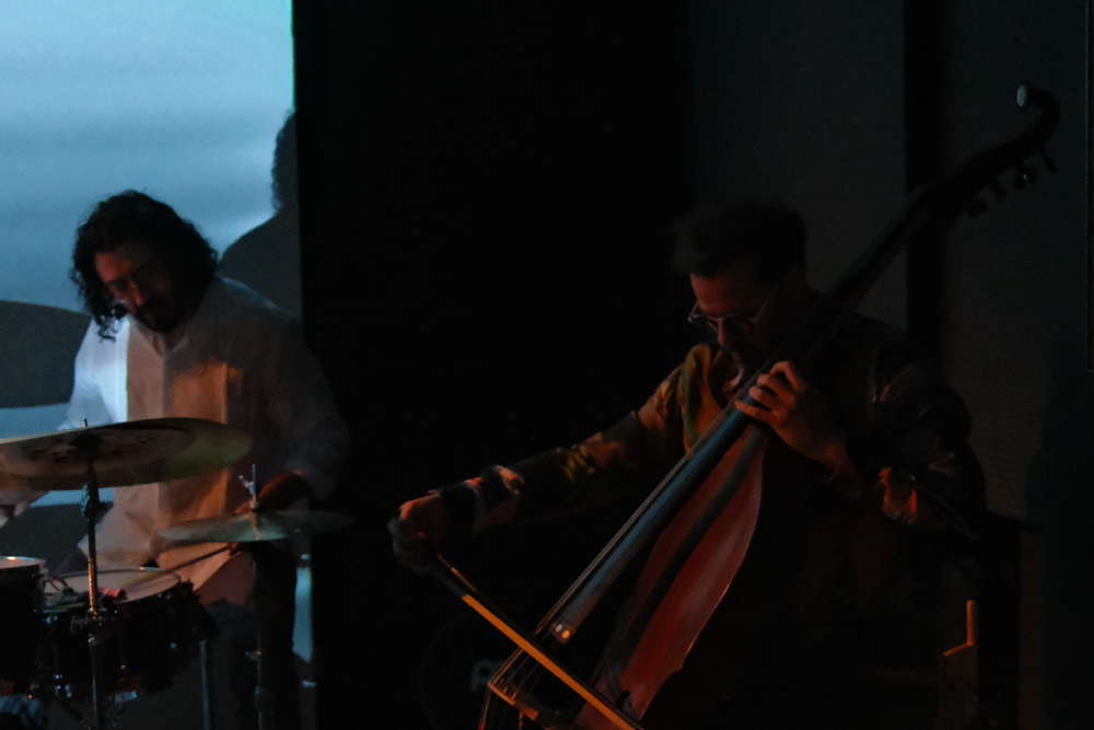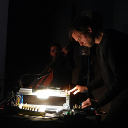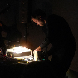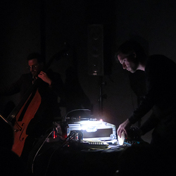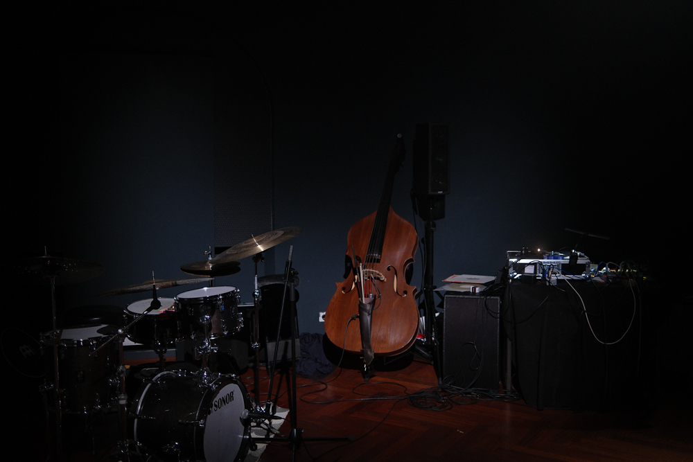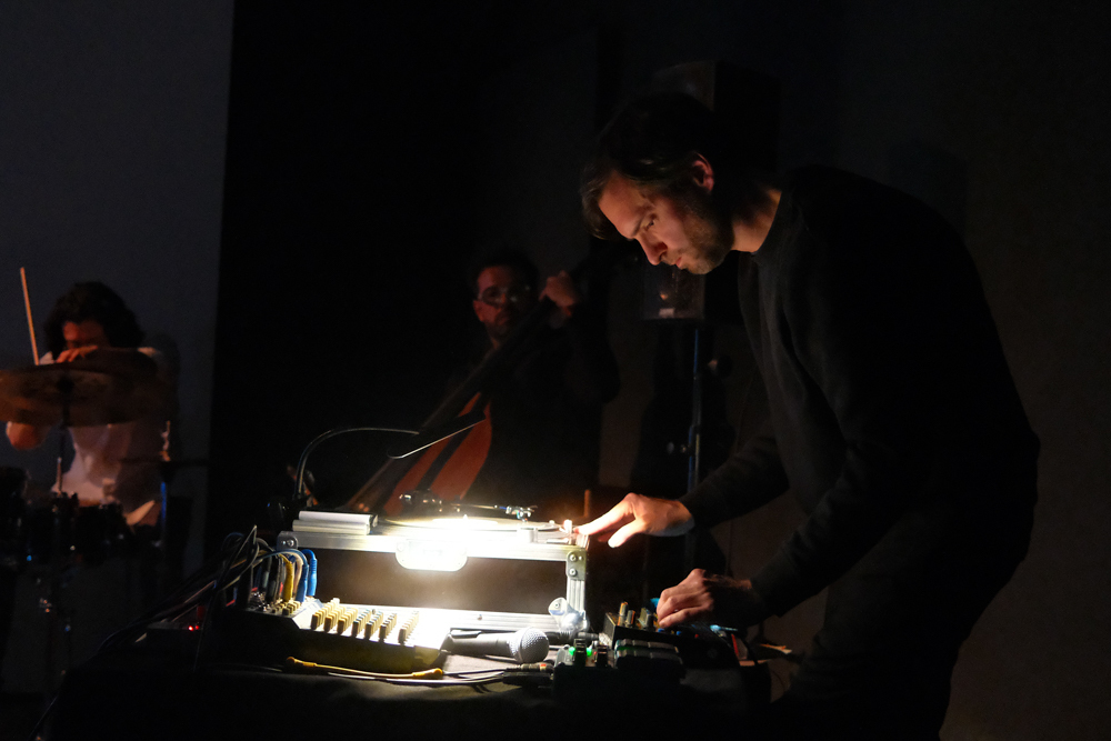 Elektronik, Schlagzeug und Bass. Dazu kommen in Echtzeit gesteuerte visuelle Projektionen.