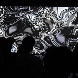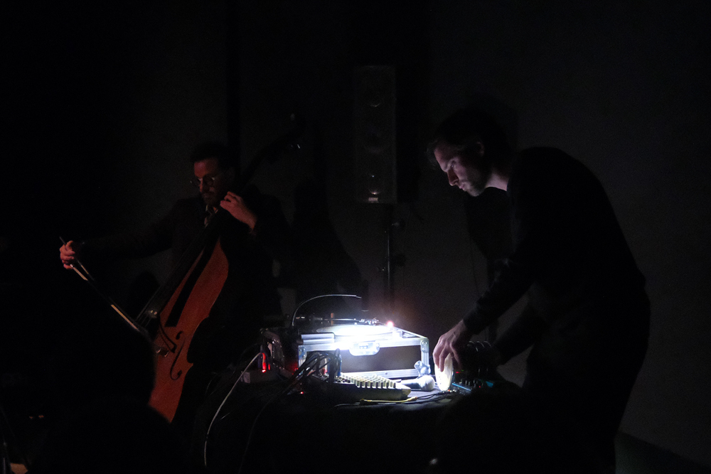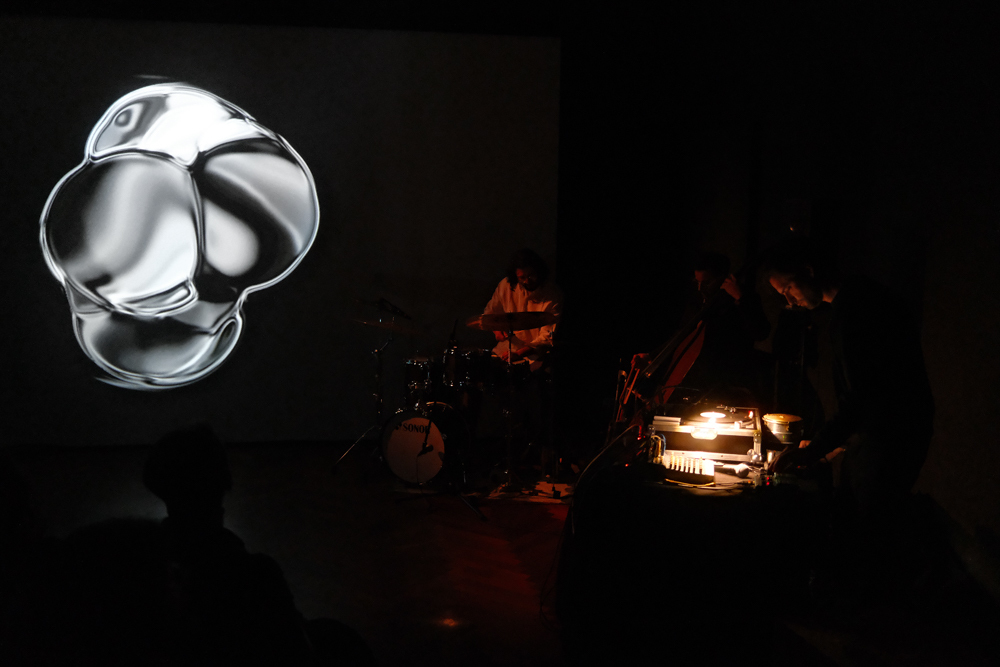 In der akustisch wie visuell beeindruckenden Atmosphäre verschmolzen scheinbar flüssige, schwebende Metallbälle und visuelle Texturen miteinander und pulsierten und verwandelten sich zm Klang, während die Musik zwischen Klassikzitaten, Albert Camus und Grooves meanderte. Ein Konzert, das schöne Stellen ohne Ende bot!
