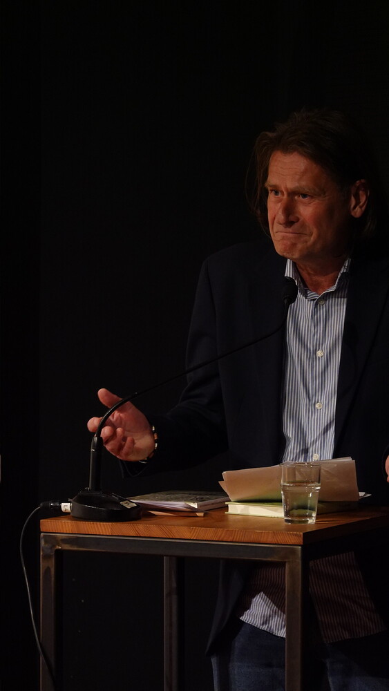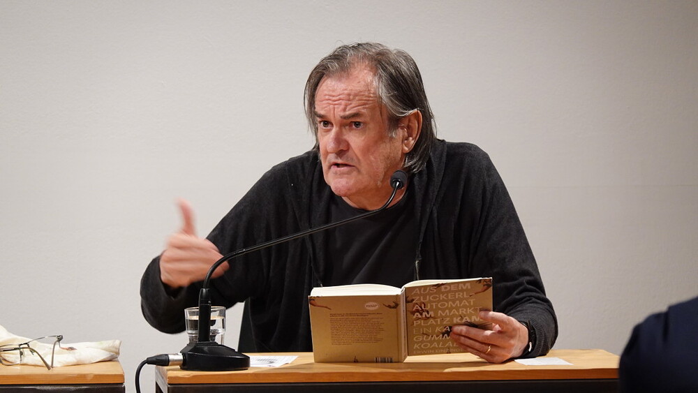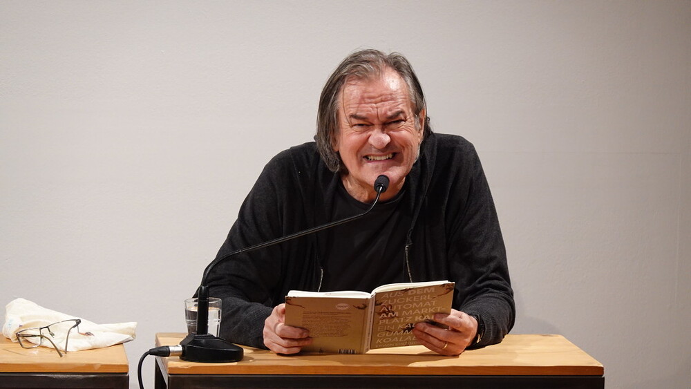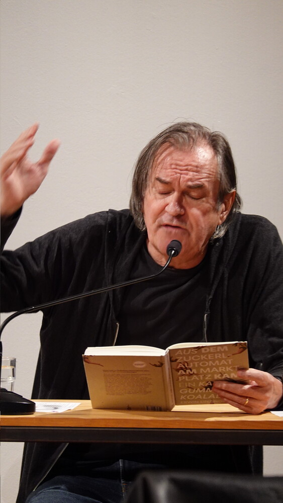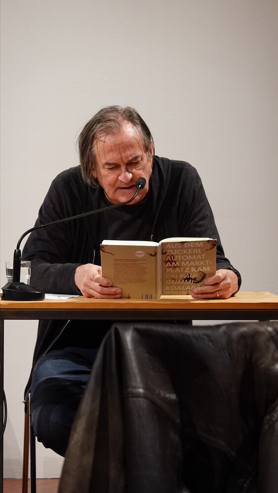 Vorgestellt wurden an diesem Abend die Gedichtbände: „Aus dem Zuckerlautomat am Marktplatz kam ein Kaugummi-Koalabär“ (Jung und Jung Verlag, 2025) von Erwin Einzinger und „Grüne Hydra von Calembour“, (Czernin Verlag, 2023) von Lisa Spalt. Ritter-Verlag-Lektor Paul Pechmann führte in das Werk der beiden ein, Helwig Brunner führte wieder das anschließende Gespräch mit dem Autor und der Autorin.