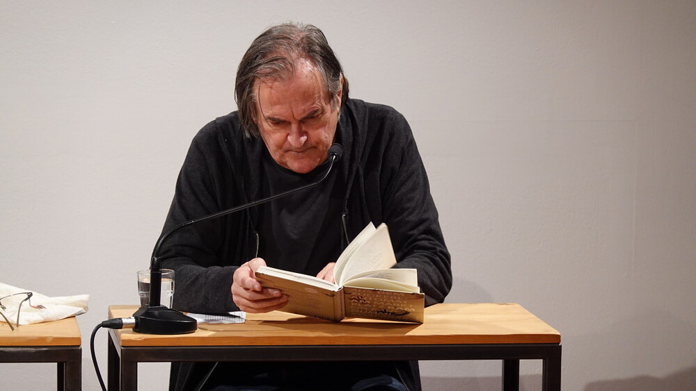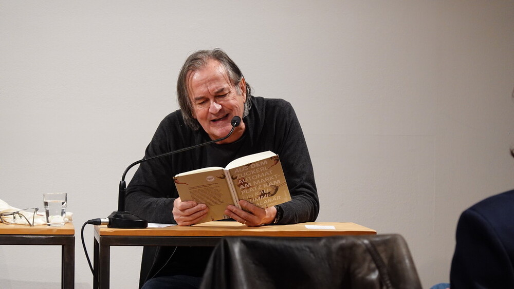Erwin Einzinger und Lisa Spalt präsentierten am 11. November in der Reihe "Doppelte Gäste" im KULTUM Gedichte und poetische Sprachexperimente, verbanden Natur und Sprache, fluteten oder wordelten den Möglichkeitsraum der Fantasie, feierten dabei eine überraschte Sprache und nahmen die Welt immer wieder auseinander: So hinlänglich, wie weitherzig, dass alles Platz hat, selbst das Entlegenste, wie ein Zuckerlautomat oder ein Sack Turbodünger.