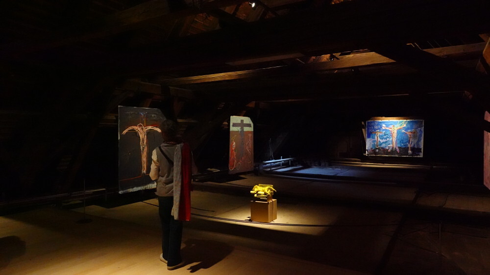 Die ersten Themenführung von Kurator Johannes Rauchenberger am 10. Oktober war dem ERBE gewidmet – und angesichts der Entwicklungen der letzten Zeit ist dieses nicht nur poetisch zu denken. Aber auch! Das kulturelle und religiöse Erbe mit Gegenwart zu reflektieren ist der Ausgangspunkt des KULTUMUSEUM, das Spuren von Religion in der Kunst der Gegenwart folgt. Die erste Abteilung der Ausstellung "GOTT HAT KEIN MUSEUM" handelt einfach vom Erbe – mit poetischen Bildern von Anfang und Content, von Widerspruch und subtiler Hinterfragung. Was sind Ankerpunkte, Leitplanken oder vielmehr Leitsterne aus dem Kosmos der „Werke der Vergangenheit, die unsere Kultur ausmachen“ (Philippe Jaccottet)? Wann werden sie zum Flügel, wann zur Last? Wer haucht wem ein Leben ein? Worauf soll man sich überhaupt beziehen? Wir beginnen buchstäblich bei Adam & Eva und landen im Heute, auch im Missbrauch des religiösen Erbes...