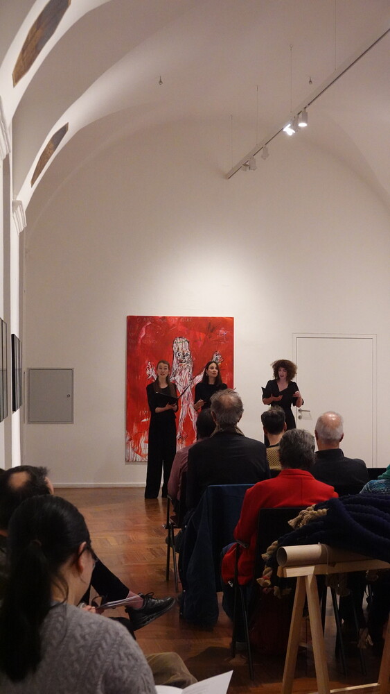 Zum Jahresausklang fand am 19. Dezember 2025 das Gesprächskonzert „Three Voices“ an gleich zwei Orten im KULTUM statt. Im Refettorio wurde Auszüge aus den Canzonette à tre voci von Claudio Monteverdi gegeben. Im Anschluss gab Elina Viluma-Helling Morton Feldman’s Werk „Three Voices“ für Solo Stimme und Tonband [imCubus].