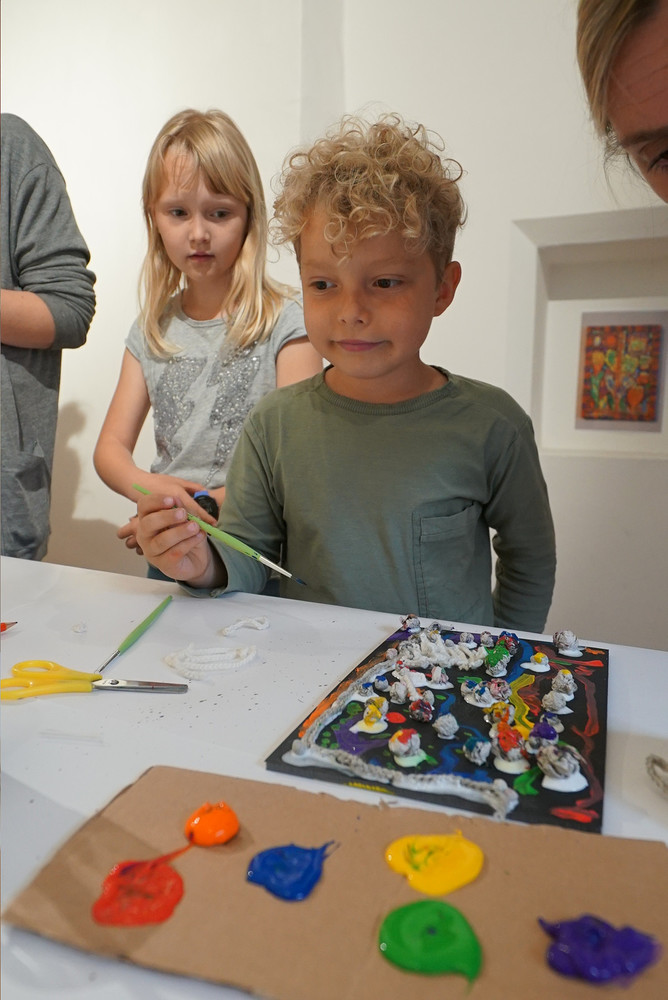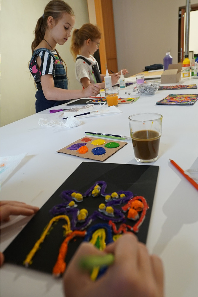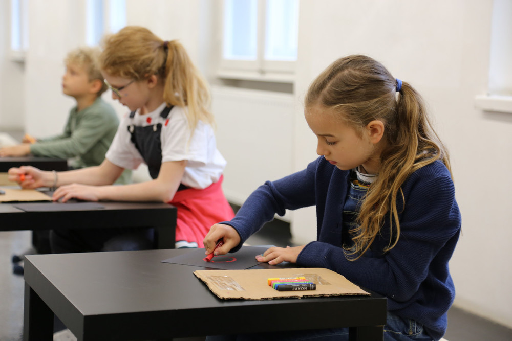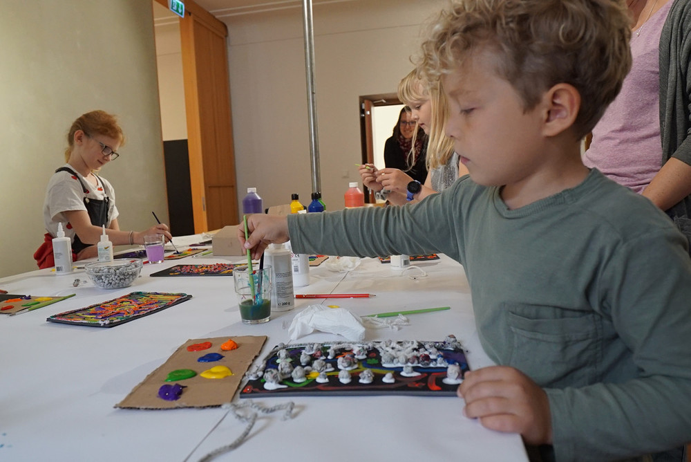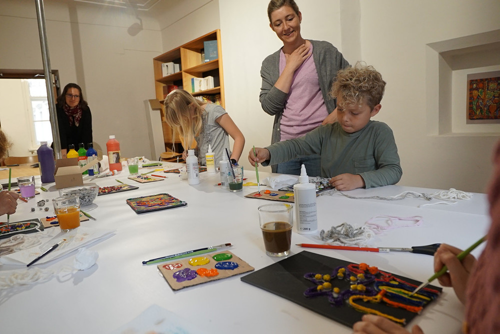 Wir erleben nicht nur eine Ausstellung zum Anschauen, sondern probieren es auch selber aus! Hier findet Ihr Bilder vom ersten Workshop...