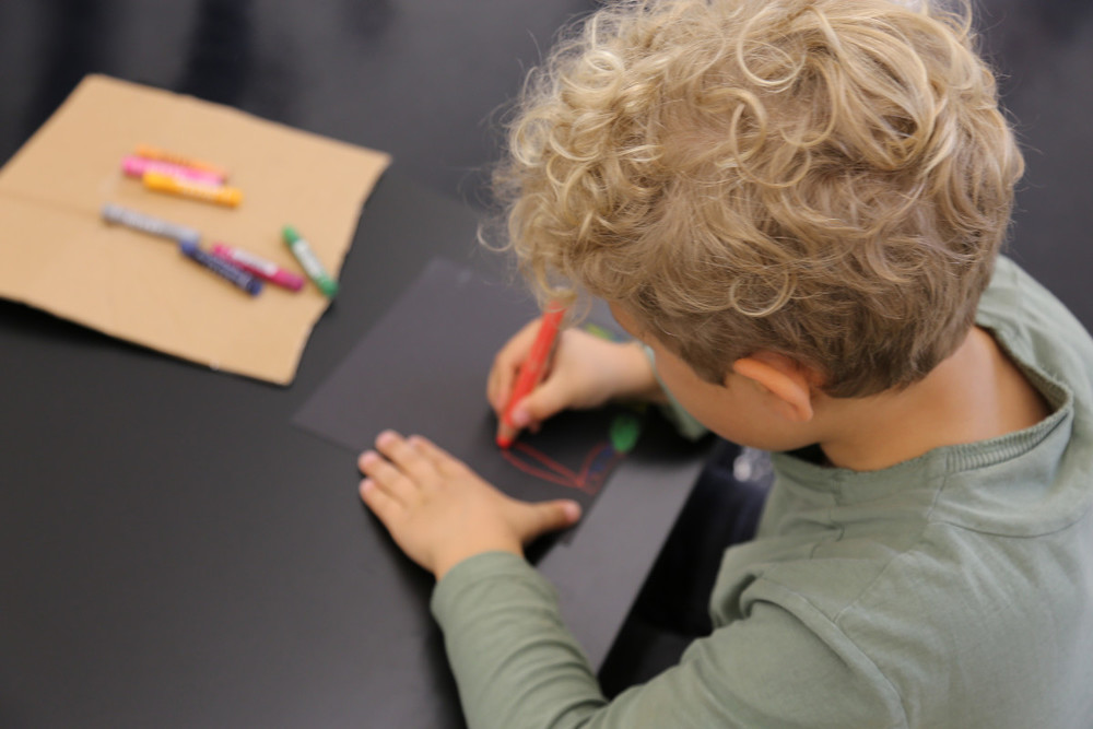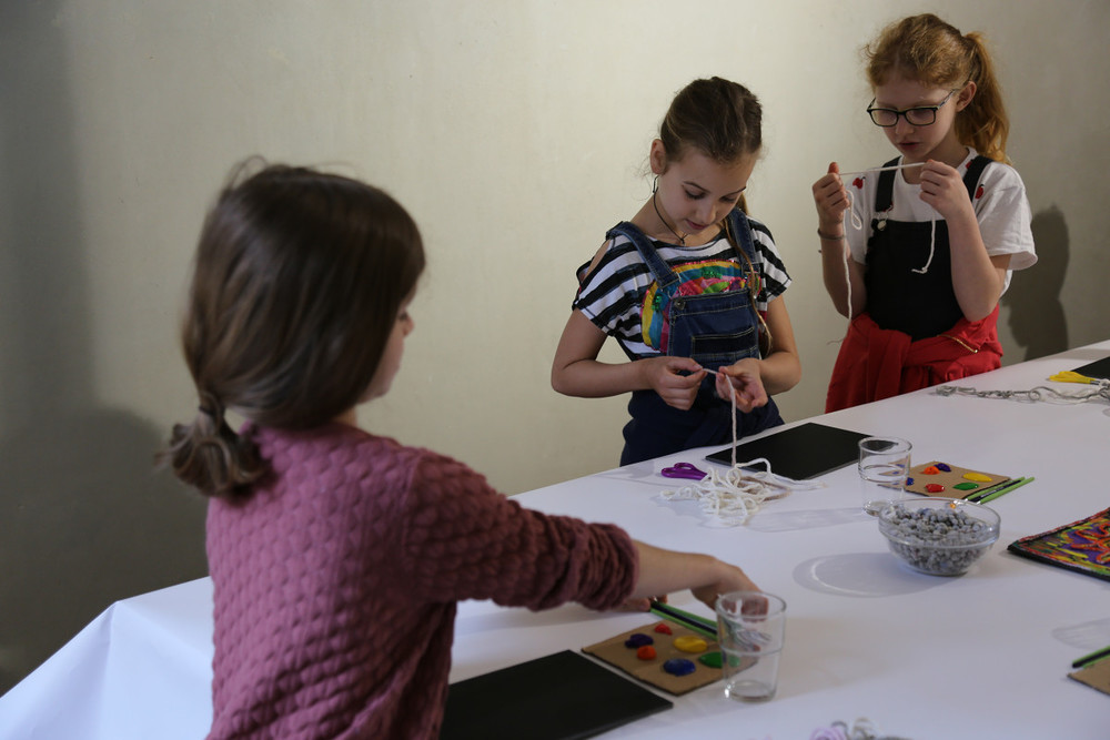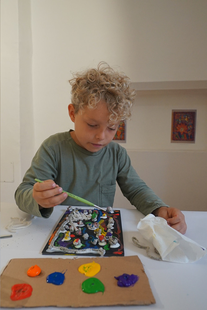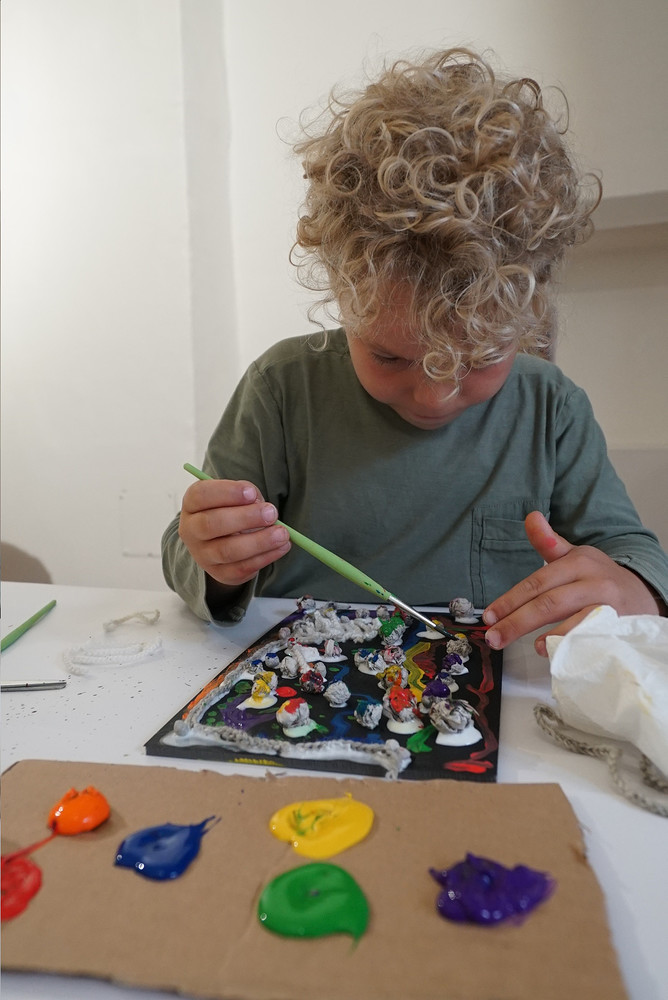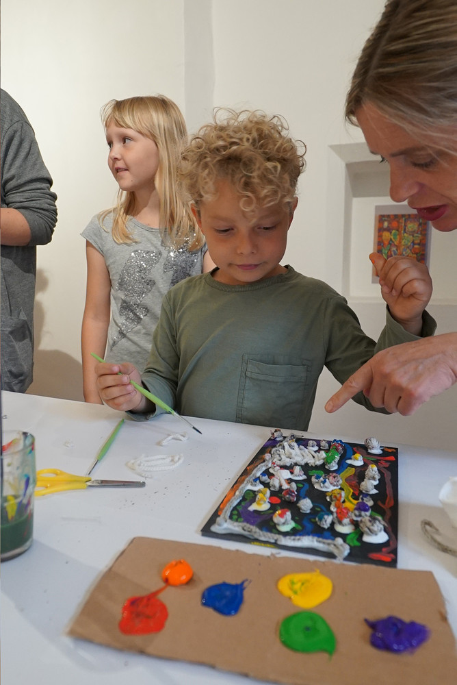 Wir erleben nicht nur eine Ausstellung zum Anschauen, sondern probieren es auch selber aus! Hier findet Ihr Bilder vom ersten Workshop...