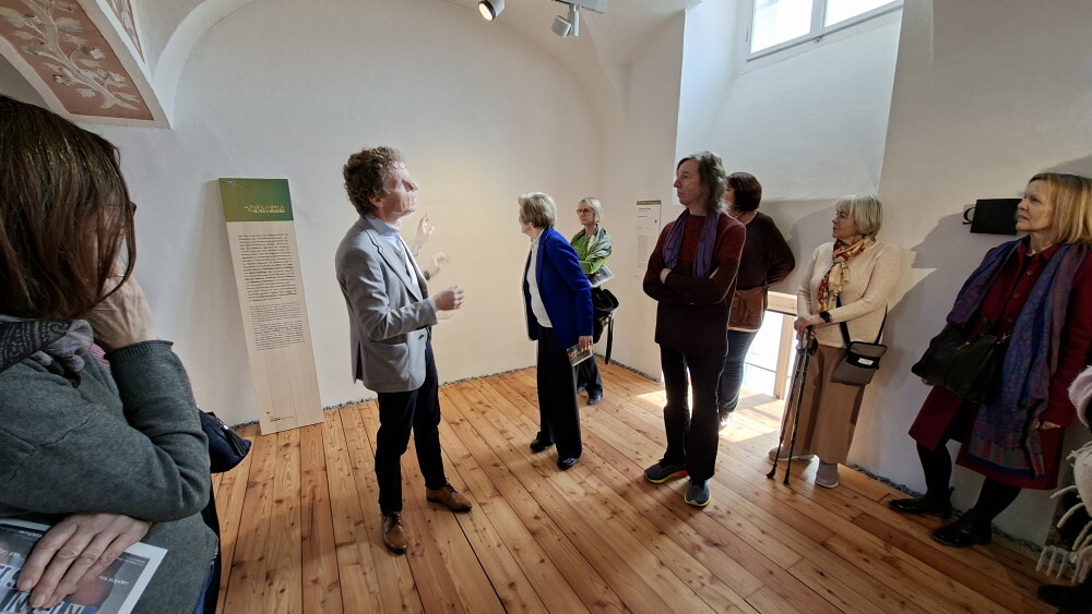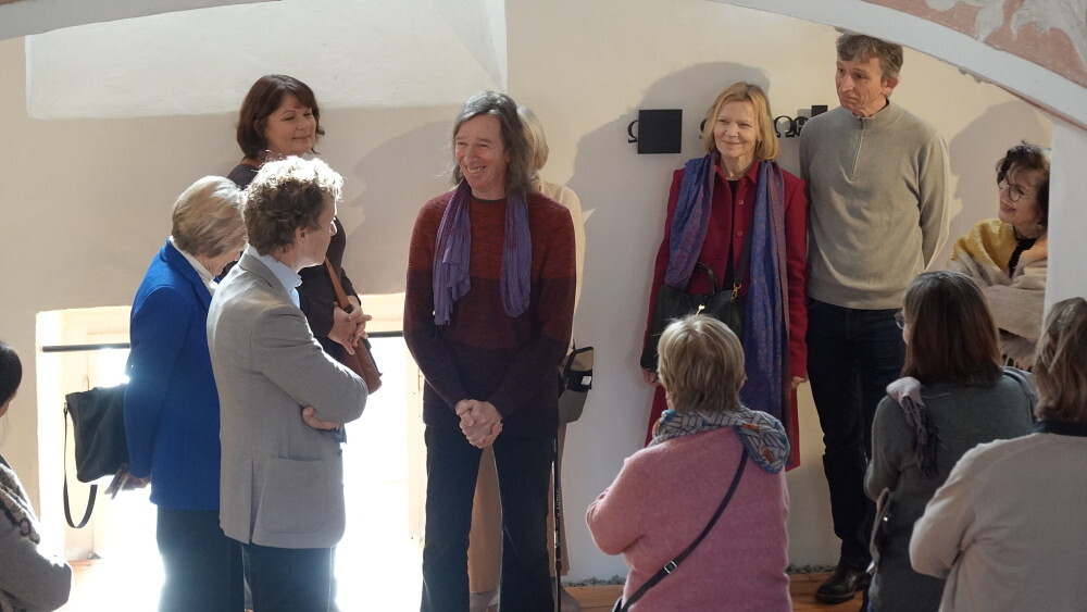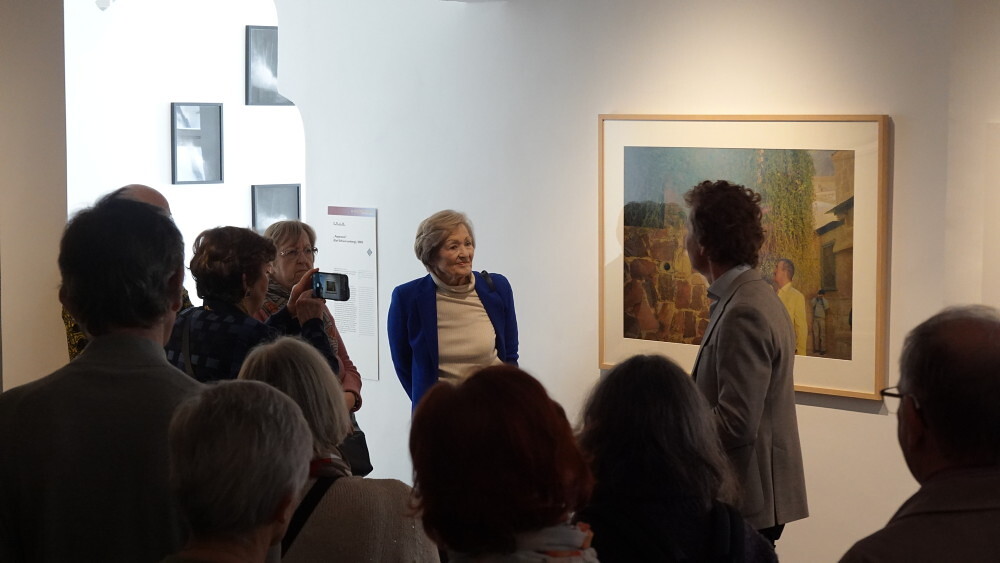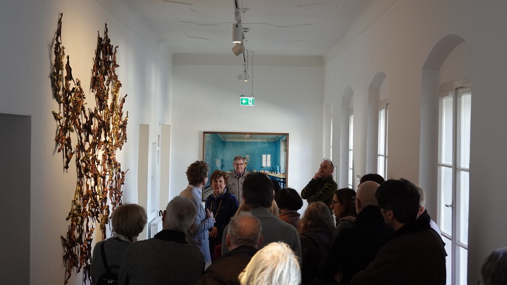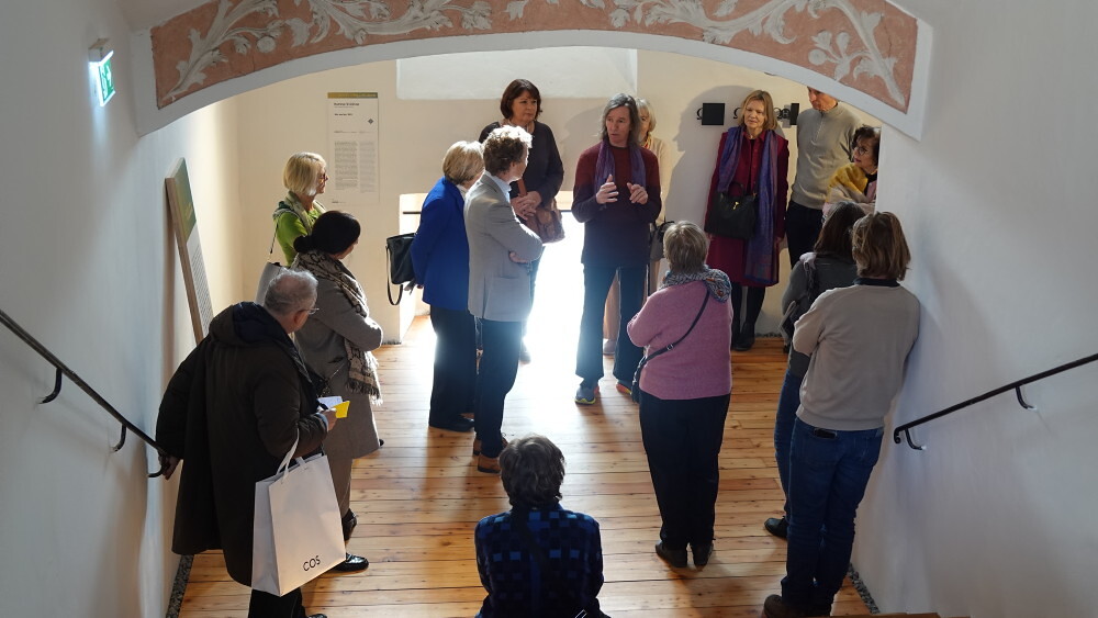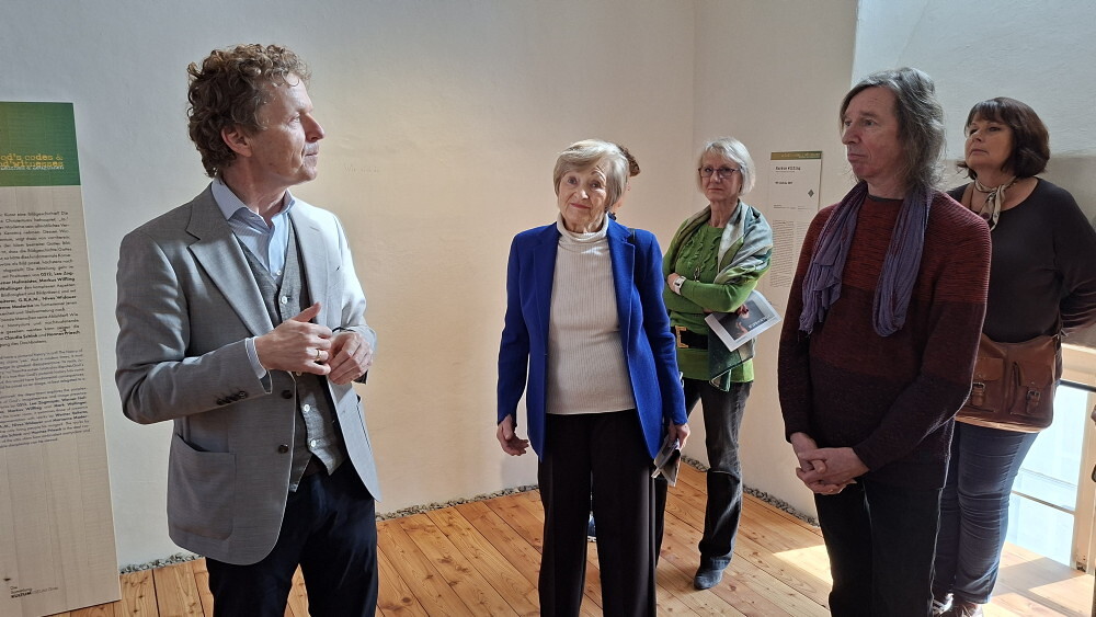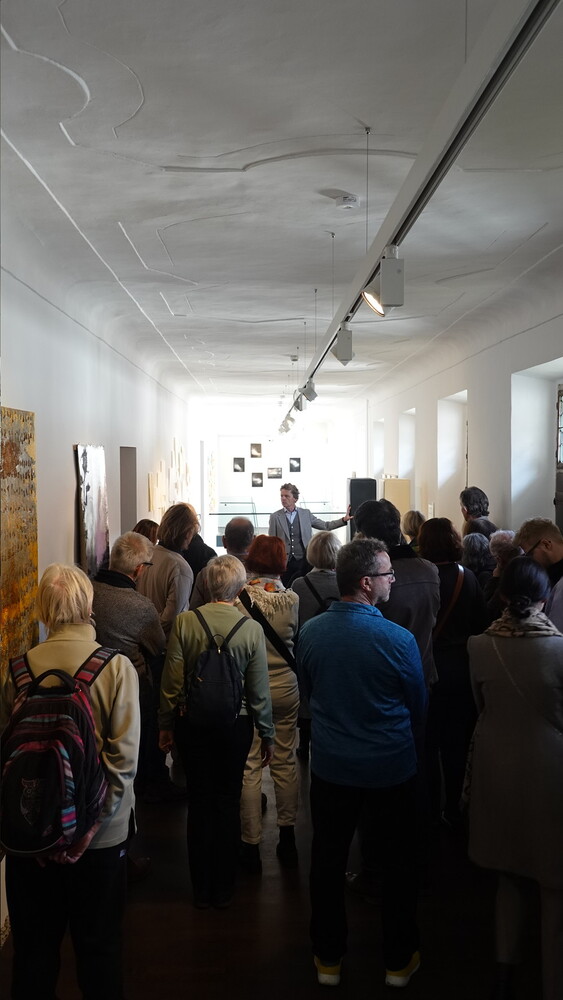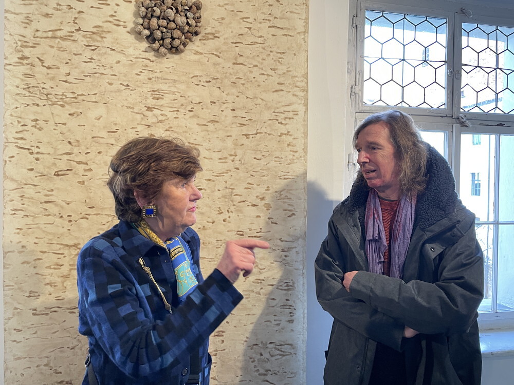 Es war ganz außerordentlich, was Markus Wilfling und Martin Behr heute als "special guests" vor ihren Bildern erzählten. Danke! Manchmal "passiert" etwas, das nicht wiederholbar ist und das sich dennoch in die Erinnerung unauslöschlich einbrennt. Das war heute der Fall, wie Markus von seinem Satz "Wir sind da" erzählte und Martin vor seinem zufällig entdeckten Fürsten Schwarzenberg vor der Kapelle des brennenden Dornbuschs am Sinai. Zwei der vielen "God's Codes" in der Ausstellung, dem Thema der heutigen Themenführung. Wieder waren sooo viele da. Danke für Euer Interesse. Ganz prominent unter ihnen: Helga Rabl-Stadler , die ehemalige Präsidentin der Salzburger Festspiele, die durch die Weihnachtsbeilage der "Salzburger Nachrichten" auf die Ausstellung aufmerksam wurde. Mit dabei auch: die ehem. Grazer Vizebürgermeisterin und Ministerin Ruth Feldgrill-Zankl.