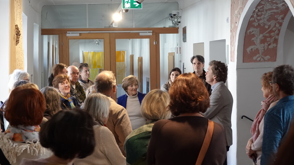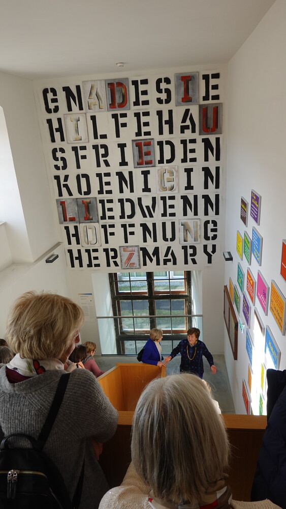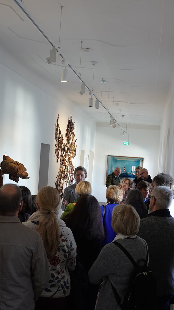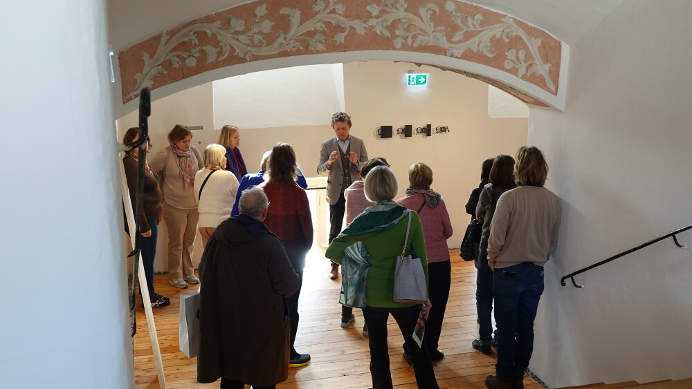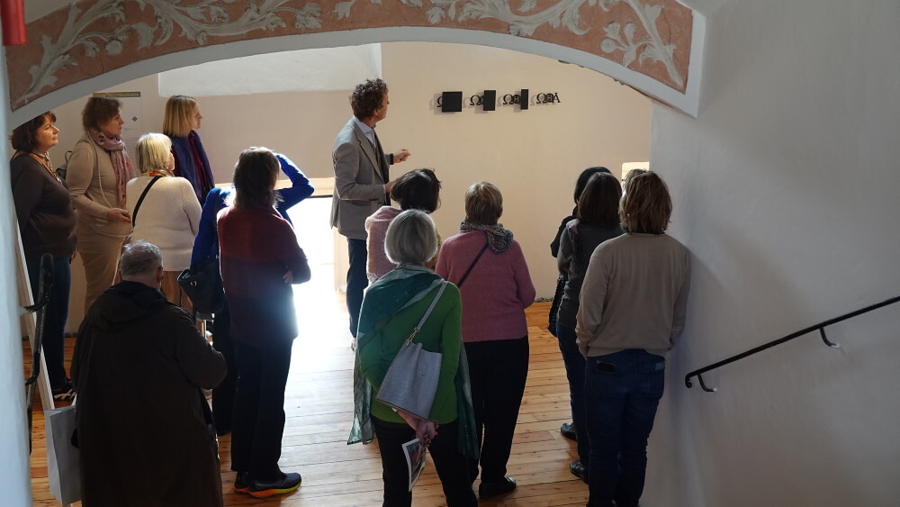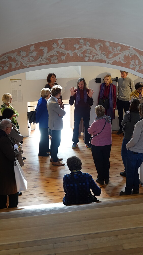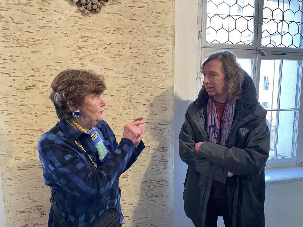 Es war ganz außerordentlich, was Markus Wilfling und Martin Behr heute als "special guests" vor ihren Bildern erzählten. Danke! Manchmal "passiert" etwas, das nicht wiederholbar ist und das sich dennoch in die Erinnerung unauslöschlich einbrennt. Das war heute der Fall, wie Markus von seinem Satz "Wir sind da" erzählte und Martin vor seinem zufällig entdeckten Fürsten Schwarzenberg vor der Kapelle des brennenden Dornbuschs am Sinai. Zwei der vielen "God's Codes" in der Ausstellung, dem Thema der heutigen Themenführung. Wieder waren sooo viele da. Danke für Euer Interesse. Ganz prominent unter ihnen: Helga Rabl-Stadler , die ehemalige Präsidentin der Salzburger Festspiele, die durch die Weihnachtsbeilage der "Salzburger Nachrichten" auf die Ausstellung aufmerksam wurde. Mit dabei auch: die ehem. Grazer Vizebürgermeisterin und Ministerin Ruth Feldgrill-Zankl.