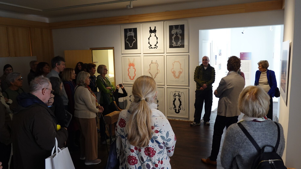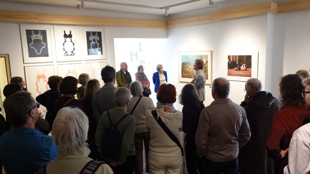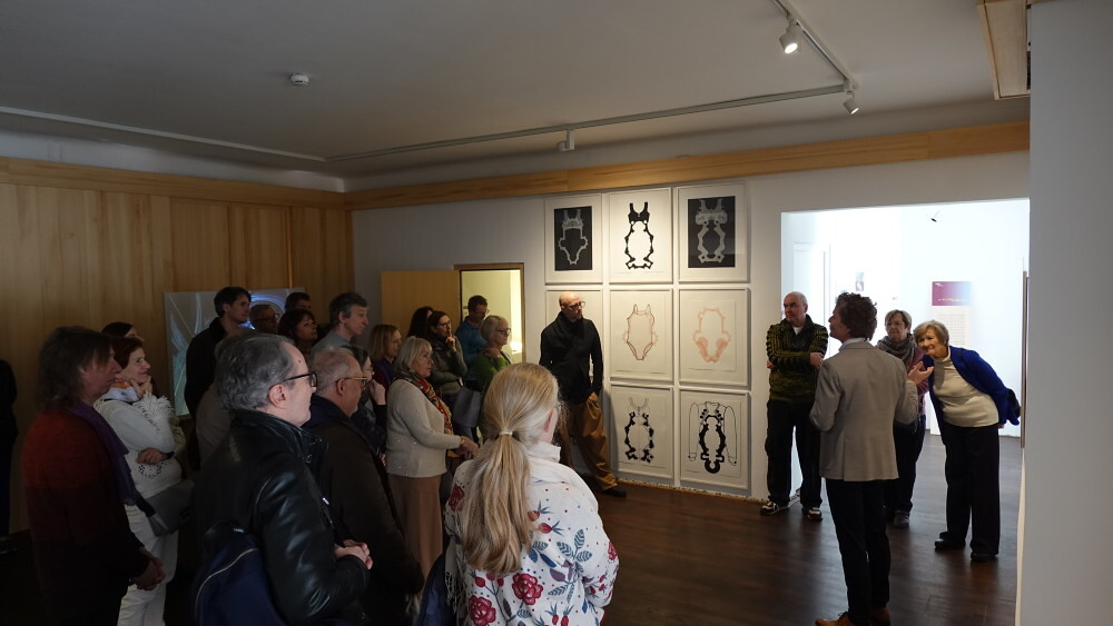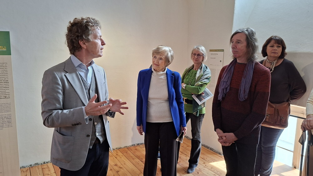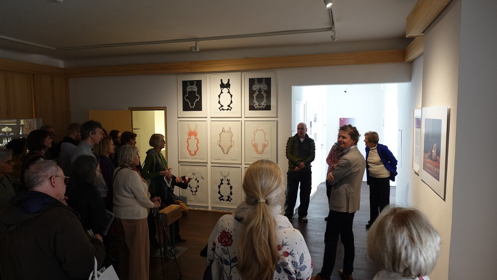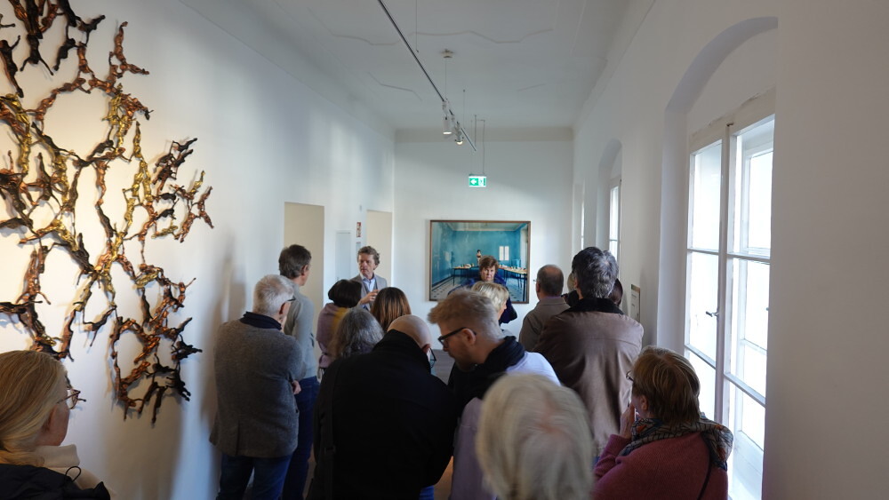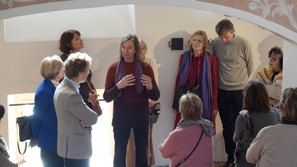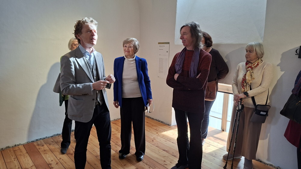 Es war ganz außerordentlich, was Markus Wilfling und Martin Behr heute als "special guests" vor ihren Bildern erzählten. Danke! Manchmal "passiert" etwas, das nicht wiederholbar ist und das sich dennoch in die Erinnerung unauslöschlich einbrennt. Das war heute der Fall, wie Markus von seinem Satz "Wir sind da" erzählte und Martin vor seinem zufällig entdeckten Fürsten Schwarzenberg vor der Kapelle des brennenden Dornbuschs am Sinai. Zwei der vielen "God's Codes" in der Ausstellung, dem Thema der heutigen Themenführung. Wieder waren sooo viele da. Danke für Euer Interesse. Ganz prominent unter ihnen: Helga Rabl-Stadler , die ehemalige Präsidentin der Salzburger Festspiele, die durch die Weihnachtsbeilage der "Salzburger Nachrichten" auf die Ausstellung aufmerksam wurde. Mit dabei auch: die ehem. Grazer Vizebürgermeisterin und Ministerin Ruth Feldgrill-Zankl.