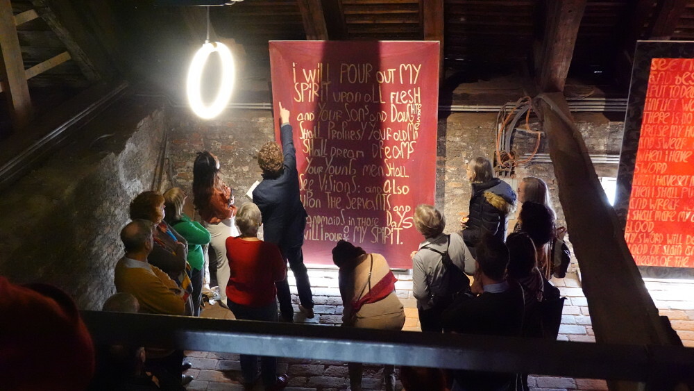Wer ist wann Feind? Warum ist „das Eigene“ heilig? Derartige Fragen stehen hinter dem immer aktueller werdenden Verhältnis von Religion und Fundamentalismus. Am Ende geht es nicht nur um Identitätspolitik, sondern um Macht, um Eroberung, um Krieg. Das kommt bekannt vor und führt in die eigene Geschichte dieser Stadt: Ruth Schnells "Erscheinungen" in ihrer Arbeit "Wes des Land" sind im wahrsten Sinne des Wortes erhellend...