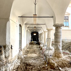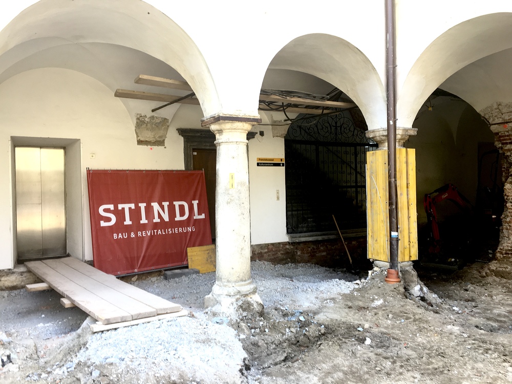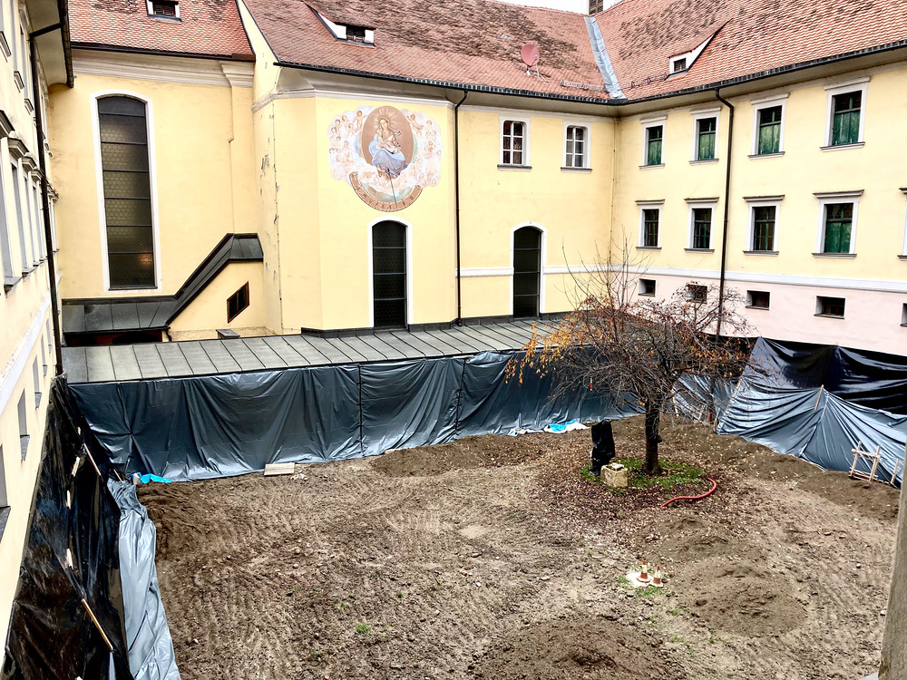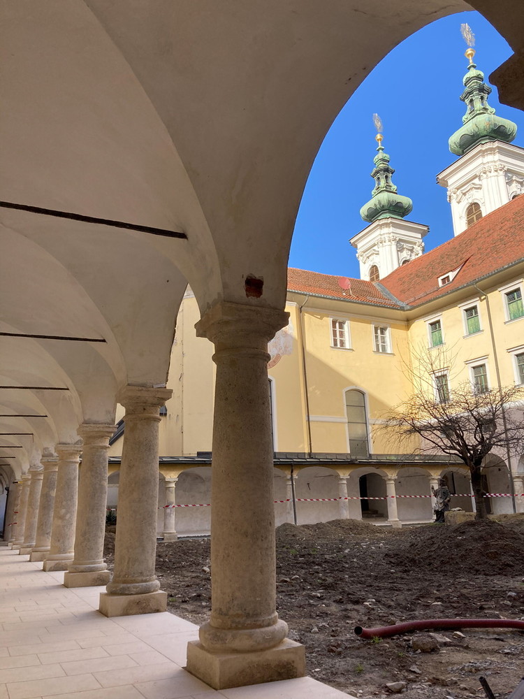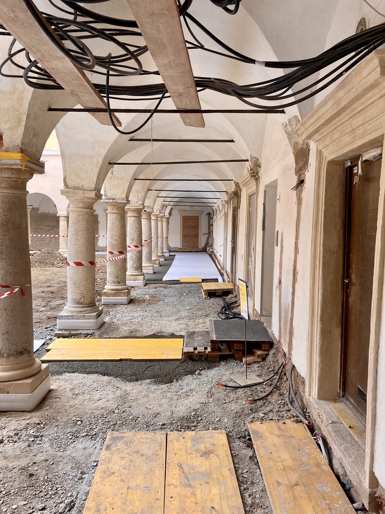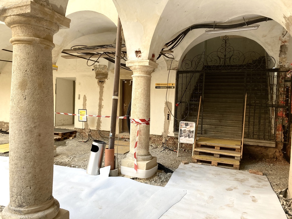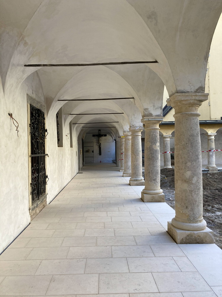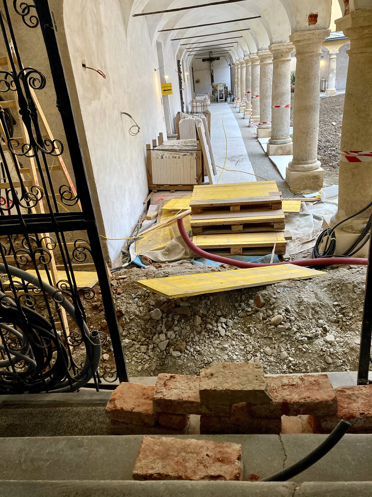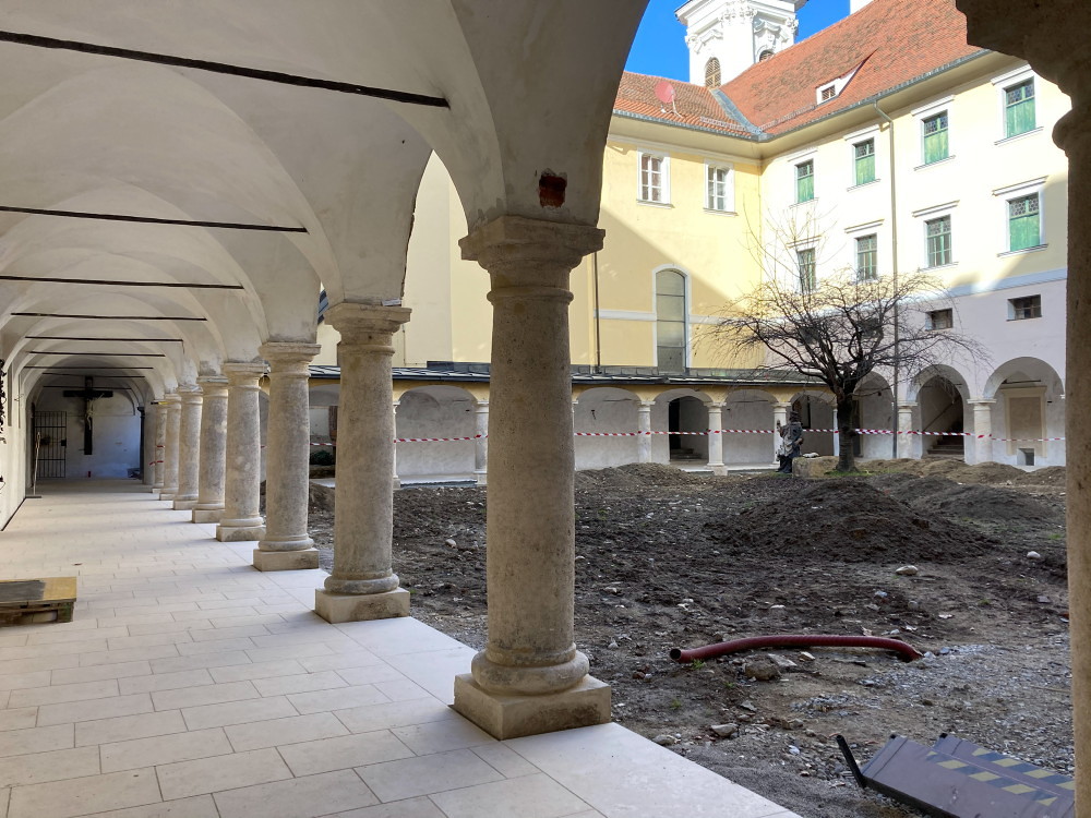 Der Corona-Lockdown hat das im Februar 2020 begonnene umfassende Renovierungsvorhaben der Minoritensäle und des Kreuzgangs des Minoritenklosters beschleunigt: Nach Ostern wurde – zeitlich etwas vorverlegt – auch mit der Renovierung des Kreuzgangs begonnen, dessen Niveau gesenkt wurde und dessen charakteristische Säulen der franziskanischen Kreuzgangsarchitektur renoviert wurden. Der Zugang zu den Minoritensälen wird bis zum September 2021 völlig neu gestaltet, ebenso der Backstage-Bereich für die Künstler. Verbaute Sichtachsen wurden durchgebrochen, Niveaus abgegraben und vereinheitlicht. Zum Jahresende wurden die Platten im Kreuzgang verlegt. Der zweite Hof wird autofrei und steht ab Herbst 2021 auch für Veranstaltungen offen. Die Veranstaltungsmöglichkeiten und auch die Ausstellungen waren zwar durch die Umbauarbeiten – zusätzlich zum Corona-Lockdown – empfindlich eingeschränkt. Allen, die es trotzdem zu uns geschafft haben, gebührt auch noch im Nachhinein Respekt!
