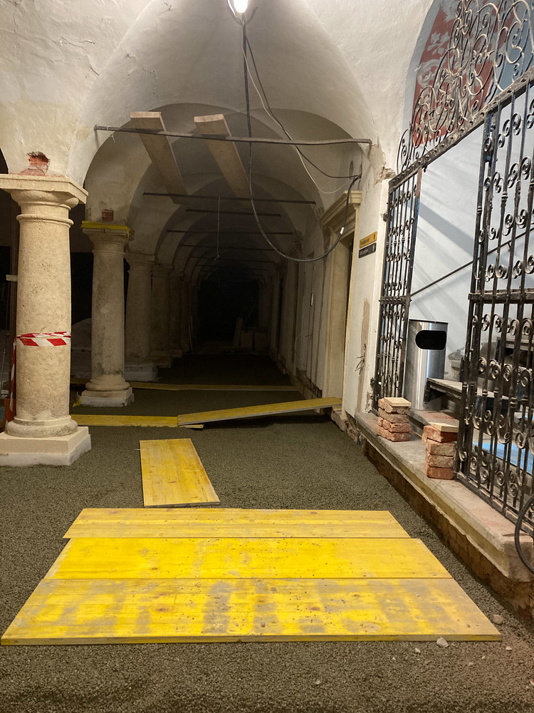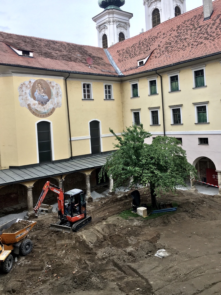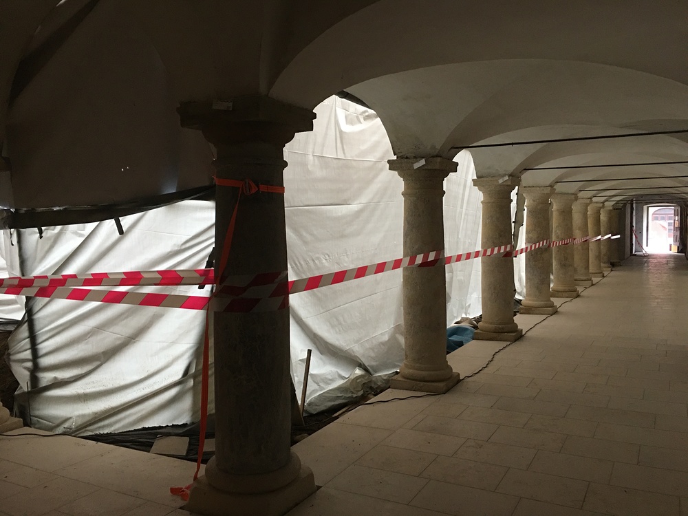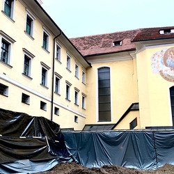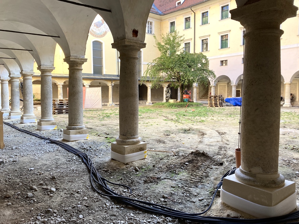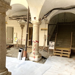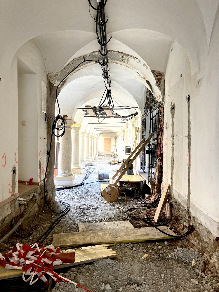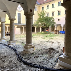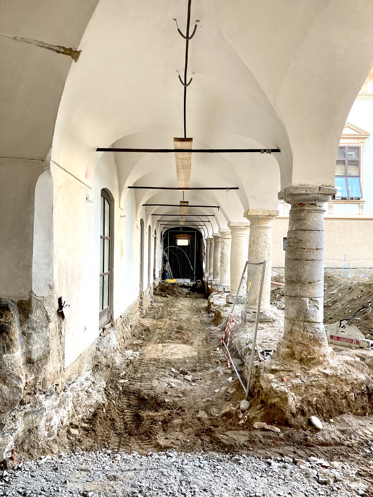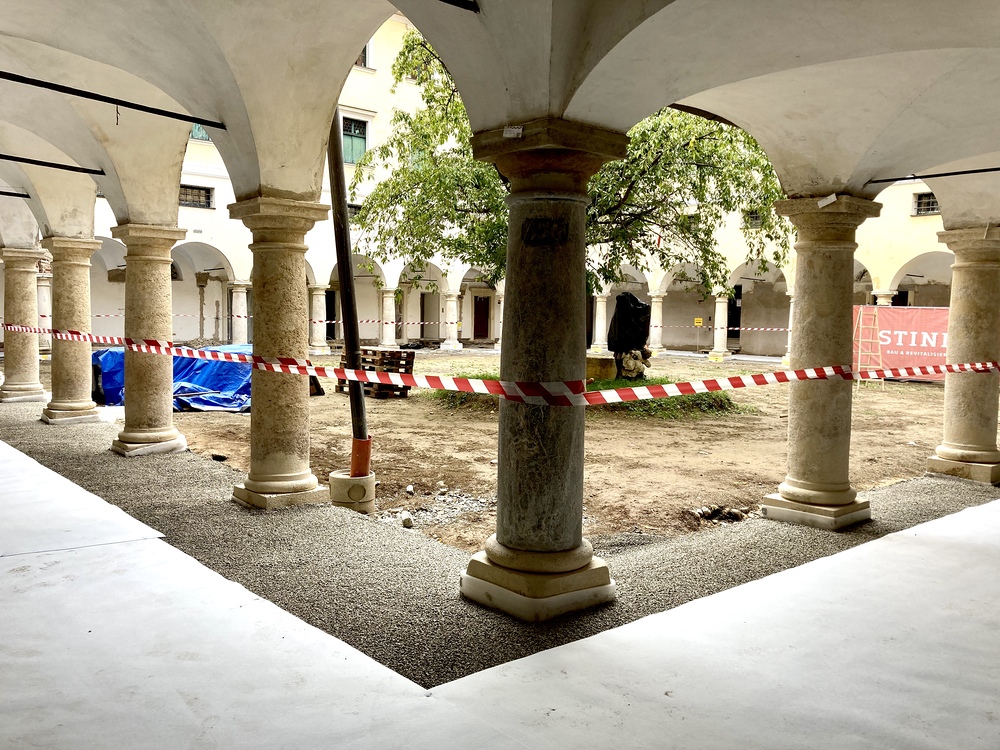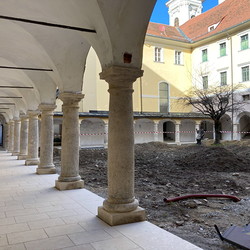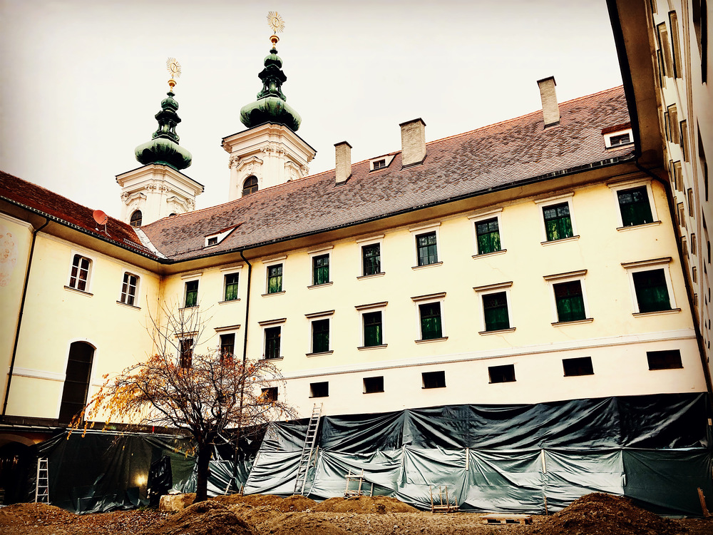 Der Corona-Lockdown hat das im Februar 2020 begonnene umfassende Renovierungsvorhaben der Minoritensäle und des Kreuzgangs des Minoritenklosters beschleunigt: Nach Ostern wurde – zeitlich etwas vorverlegt – auch mit der Renovierung des Kreuzgangs begonnen, dessen Niveau gesenkt wurde und dessen charakteristische Säulen der franziskanischen Kreuzgangsarchitektur renoviert wurden. Der Zugang zu den Minoritensälen wird bis zum September 2021 völlig neu gestaltet, ebenso der Backstage-Bereich für die Künstler. Verbaute Sichtachsen wurden durchgebrochen, Niveaus abgegraben und vereinheitlicht. Zum Jahresende wurden die Platten im Kreuzgang verlegt. Der zweite Hof wird autofrei und steht ab Herbst 2021 auch für Veranstaltungen offen. Die Veranstaltungsmöglichkeiten und auch die Ausstellungen waren zwar durch die Umbauarbeiten – zusätzlich zum Corona-Lockdown – empfindlich eingeschränkt. Allen, die es trotzdem zu uns geschafft haben, gebührt auch noch im Nachhinein Respekt!