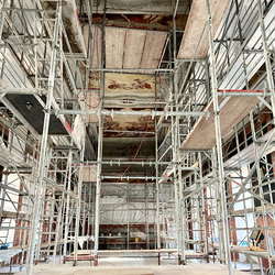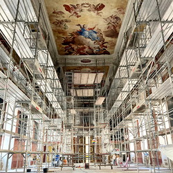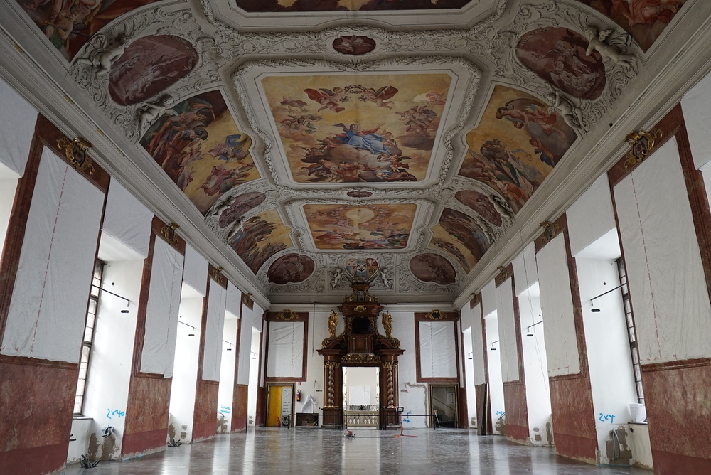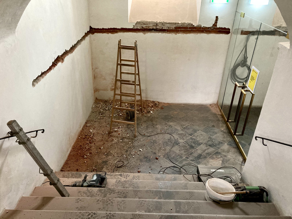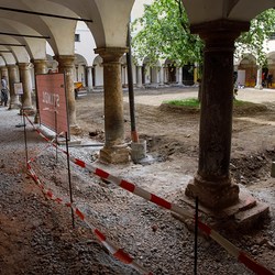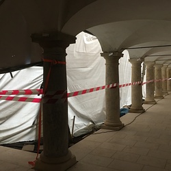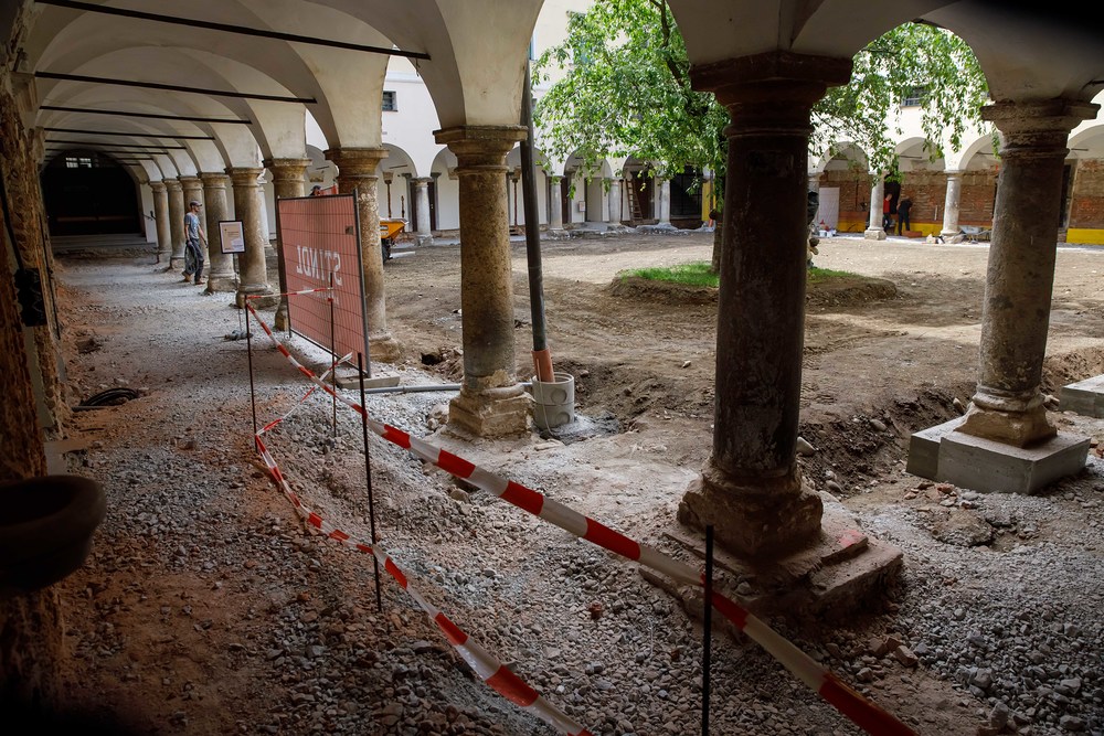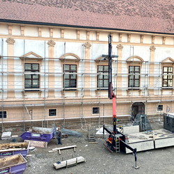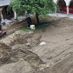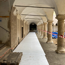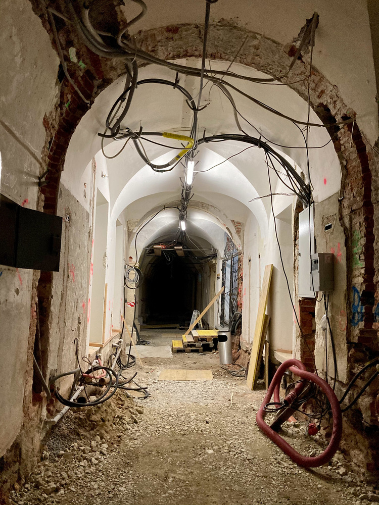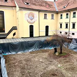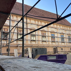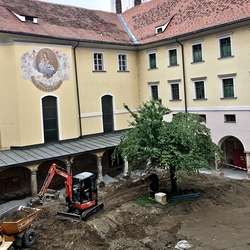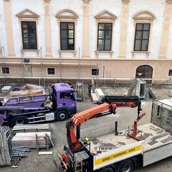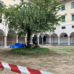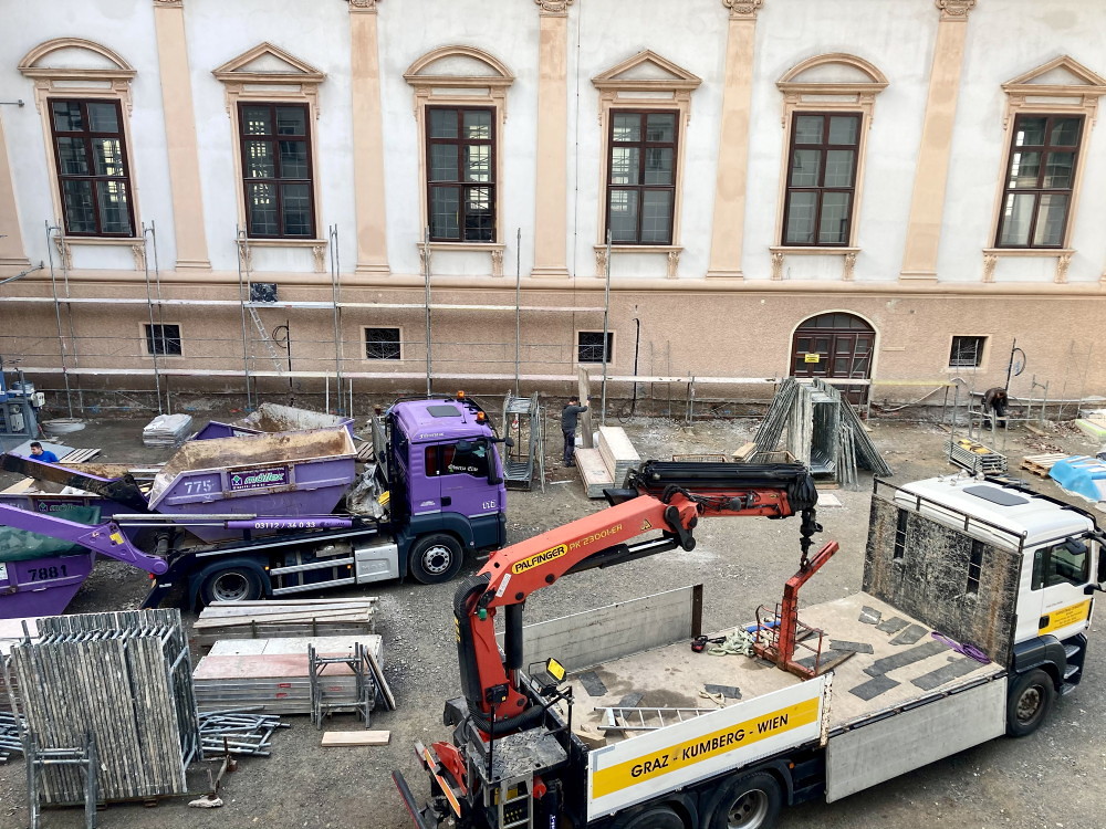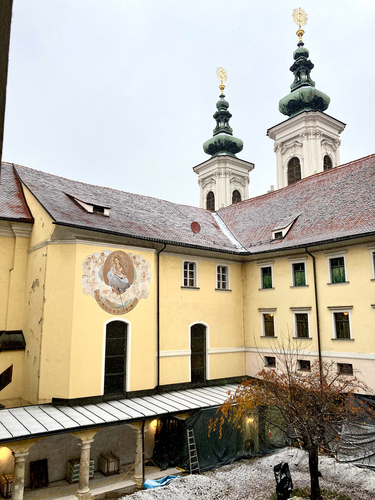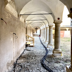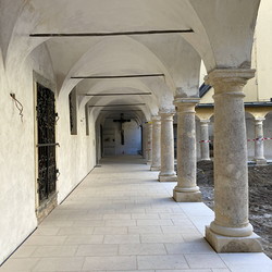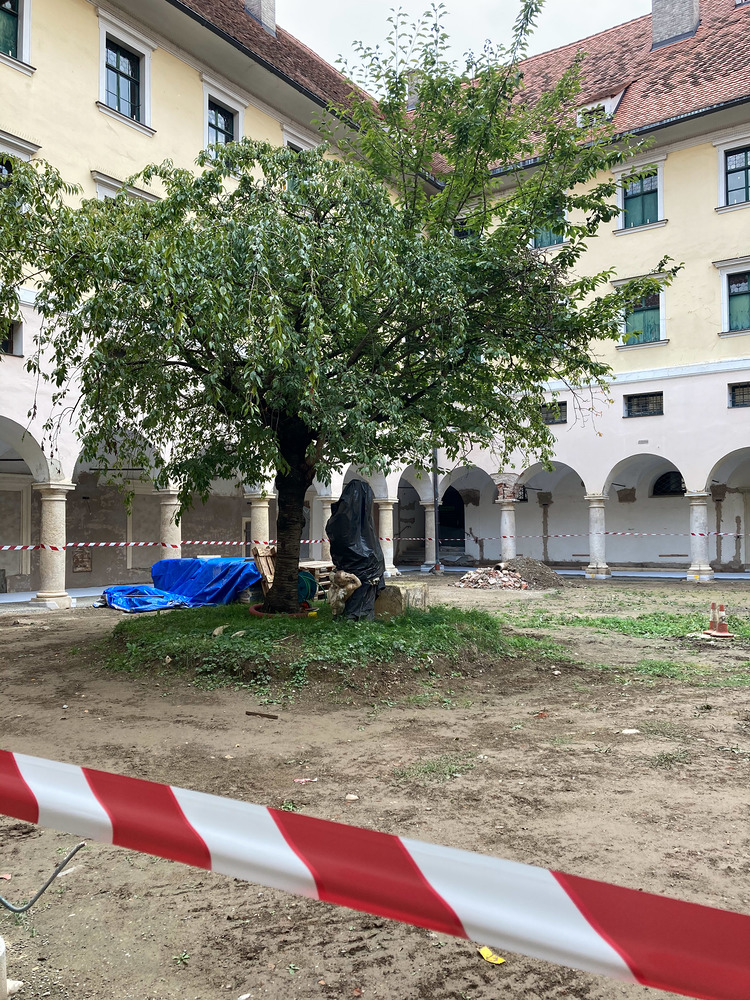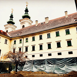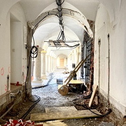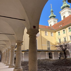 Der Corona-Lockdown hat das im Februar 2020 begonnene umfassende Renovierungsvorhaben der Minoritensäle und des Kreuzgangs des Minoritenklosters beschleunigt: Nach Ostern wurde – zeitlich etwas vorverlegt – auch mit der Renovierung des Kreuzgangs begonnen, dessen Niveau gesenkt wurde und dessen charakteristische Säulen der franziskanischen Kreuzgangsarchitektur renoviert wurden. Der Zugang zu den Minoritensälen wird bis zum September 2021 völlig neu gestaltet, ebenso der Backstage-Bereich für die Künstler. Verbaute Sichtachsen wurden durchgebrochen, Niveaus abgegraben und vereinheitlicht. Zum Jahresende wurden die Platten im Kreuzgang verlegt. Der zweite Hof wird autofrei und steht ab Herbst 2021 auch für Veranstaltungen offen. Die Veranstaltungsmöglichkeiten und auch die Ausstellungen waren zwar durch die Umbauarbeiten – zusätzlich zum Corona-Lockdown – empfindlich eingeschränkt. Allen, die es trotzdem zu uns geschafft haben, gebührt auch noch im Nachhinein Respekt!