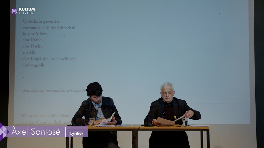 In Zeiten einer unglaublichen Sprachlosigkeit luden wir am 25. März 2022 zu einer weiteren Ausgabe der Literatur-Reihe DER DOPPELTE GAST mit Lesungen des katalanischen Lyrikers Àxel Sanjosé und des deutschen Dichters Tristan Marquardt.